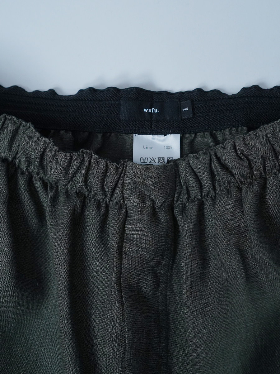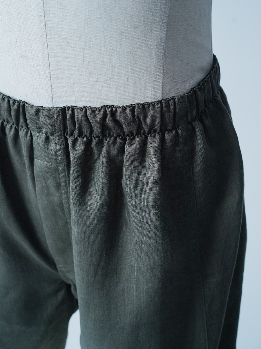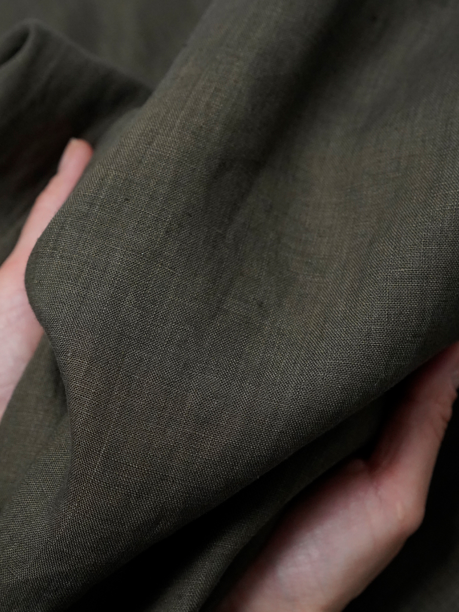 - ※生地工場の生産時期によって色味の濃淡が出ることがございます。セットアップでの着用の場合はご相談下さい。カラーリネンは最初色落ちや生地の性質上、毛羽落ちがある場合がございます。落ち着くまで数回は単品でのお洗濯を。最初は水通しをおすすめします。表面の毛羽立ちがとれて、肌への刺激が極端に少なくなります。リネン特有のネップ、節がございます。