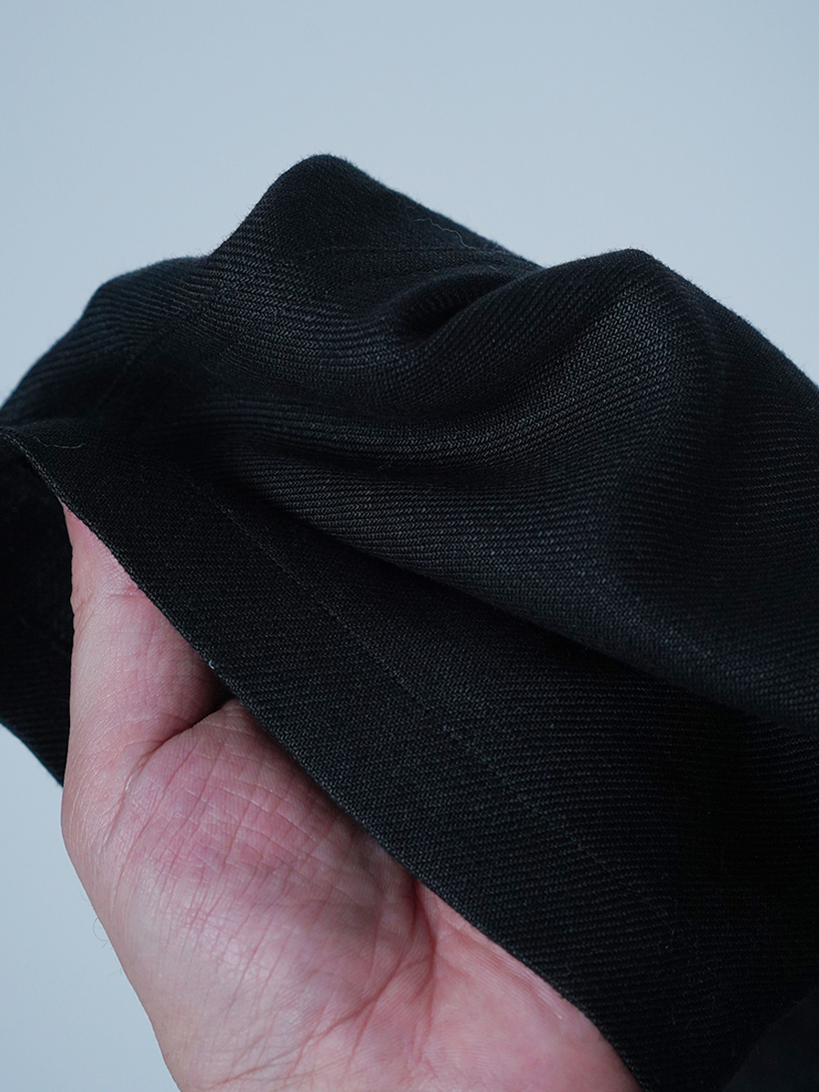 - ※生地工場の生産時期によって色味の濃淡が出ることがございます。セットアップでの着用の場合はご相談下さい。カラーリネンは最初色落ちや生地の性質上、毛羽落ちがある場合がございます。落ち着くまで数回は単品でのお洗濯を。最初は水通しをおすすめします。表面の毛羽立ちがとれて、肌への刺激が極端に少なくなります。リネン特有のネップ、節がございます。