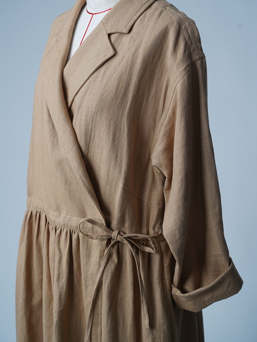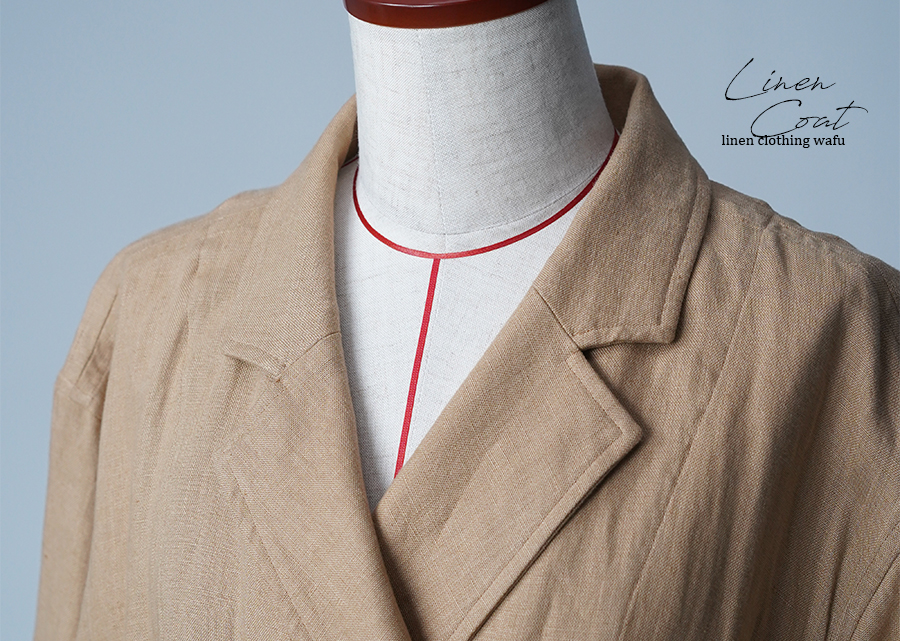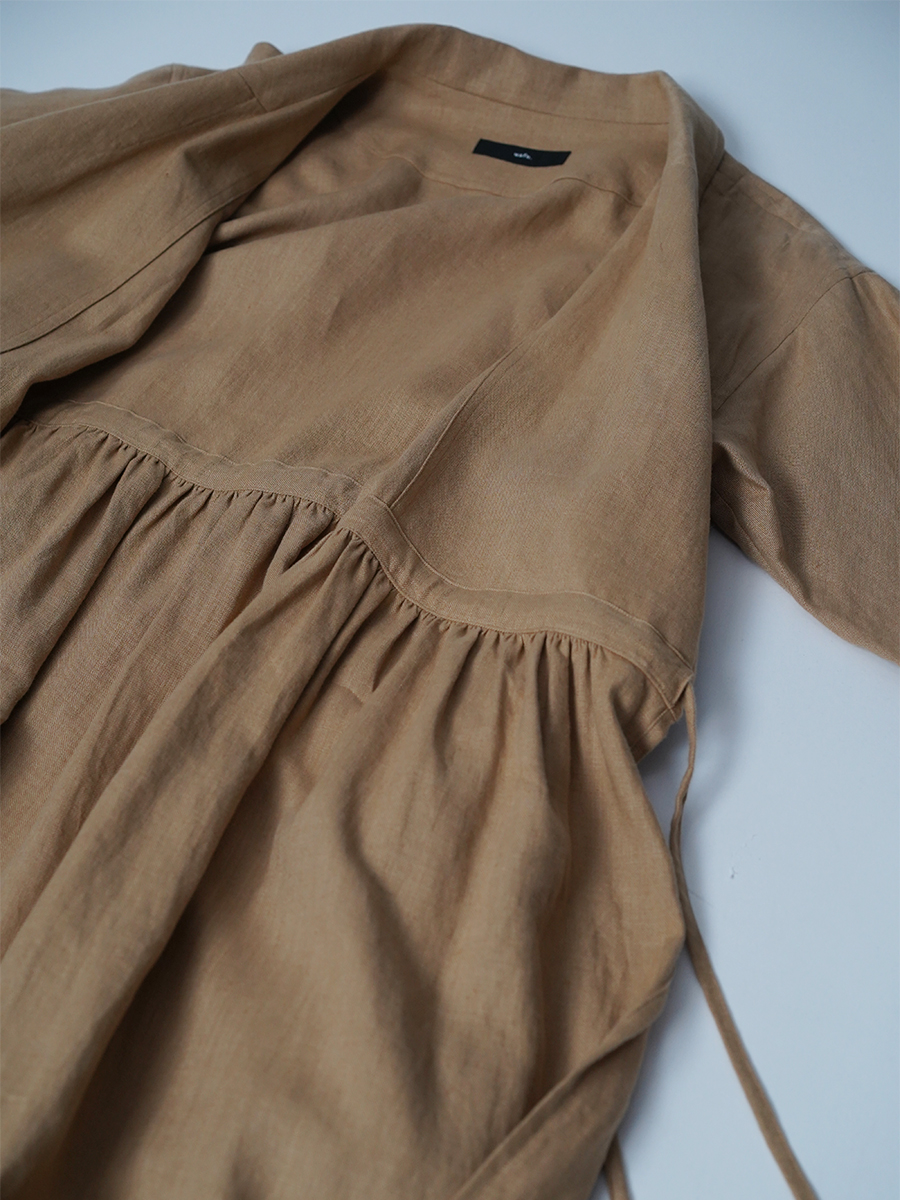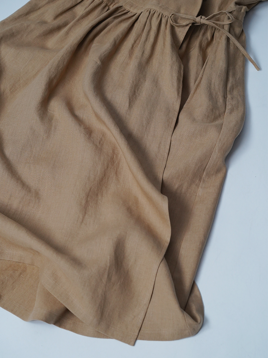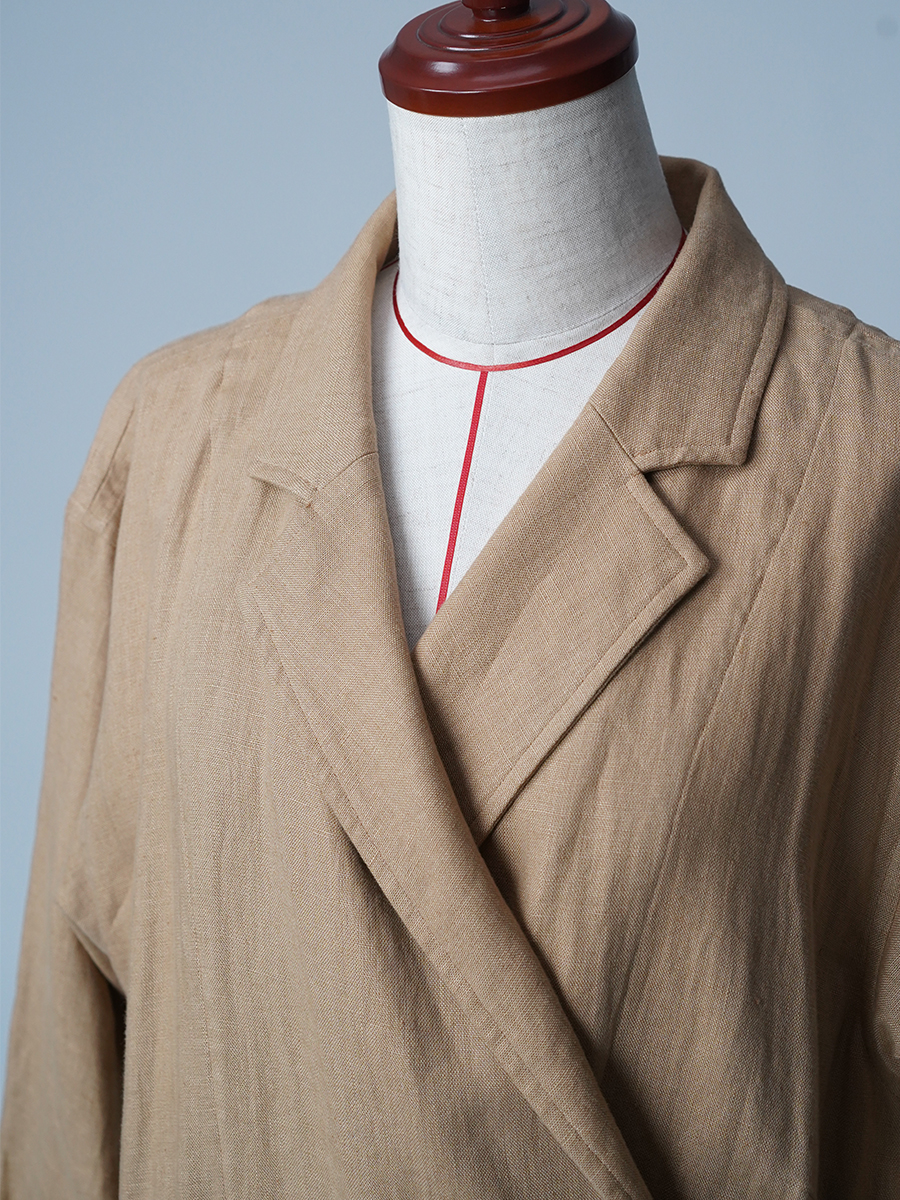 - ※生地工場の生産時期によって色味の濃淡が出ることがございます。セットアップでの着用の場合はご相談下さい。カラーリネンは最初色落ちや生地の性質上、毛羽落ちがある場合がございます。落ち着くまで数回は単品でのお洗濯を。最初は水通しをおすすめします。表面の毛羽立ちがとれて、肌への刺激が極端に少なくなります。リネン特有のネップ、節がございます。