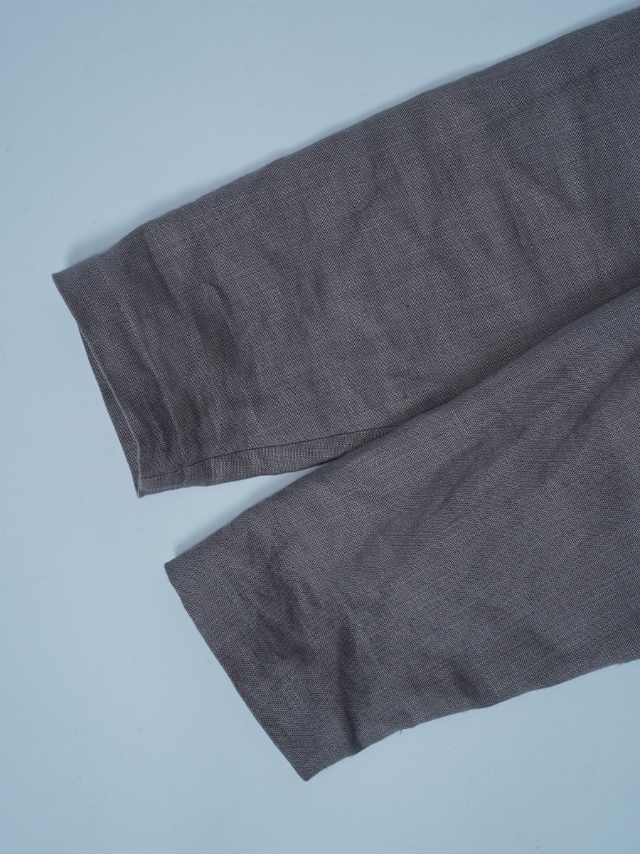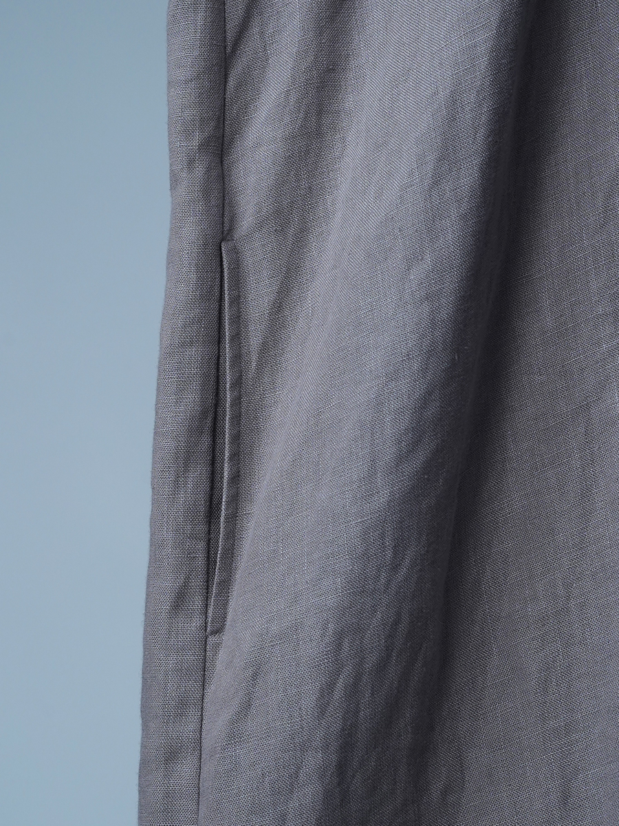 - ※生地工場の生産時期によって色味の濃淡が出ることがございます。セットアップでの着用の場合はご相談下さい。カラーリネンは最初色落ちや生地の性質上、毛羽落ちがある場合がございます。落ち着くまで数回は単品でのお洗濯を。最初は水通しをおすすめします。表面の毛羽立ちがとれて、肌への刺激が極端に少なくなります。リネン特有のネップ、節がございます。