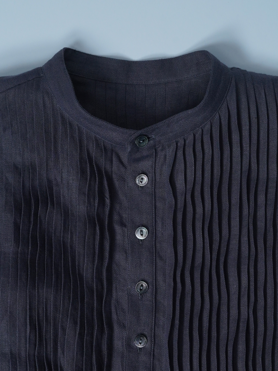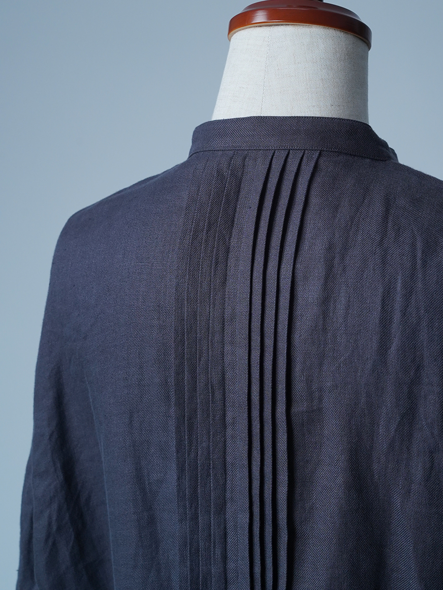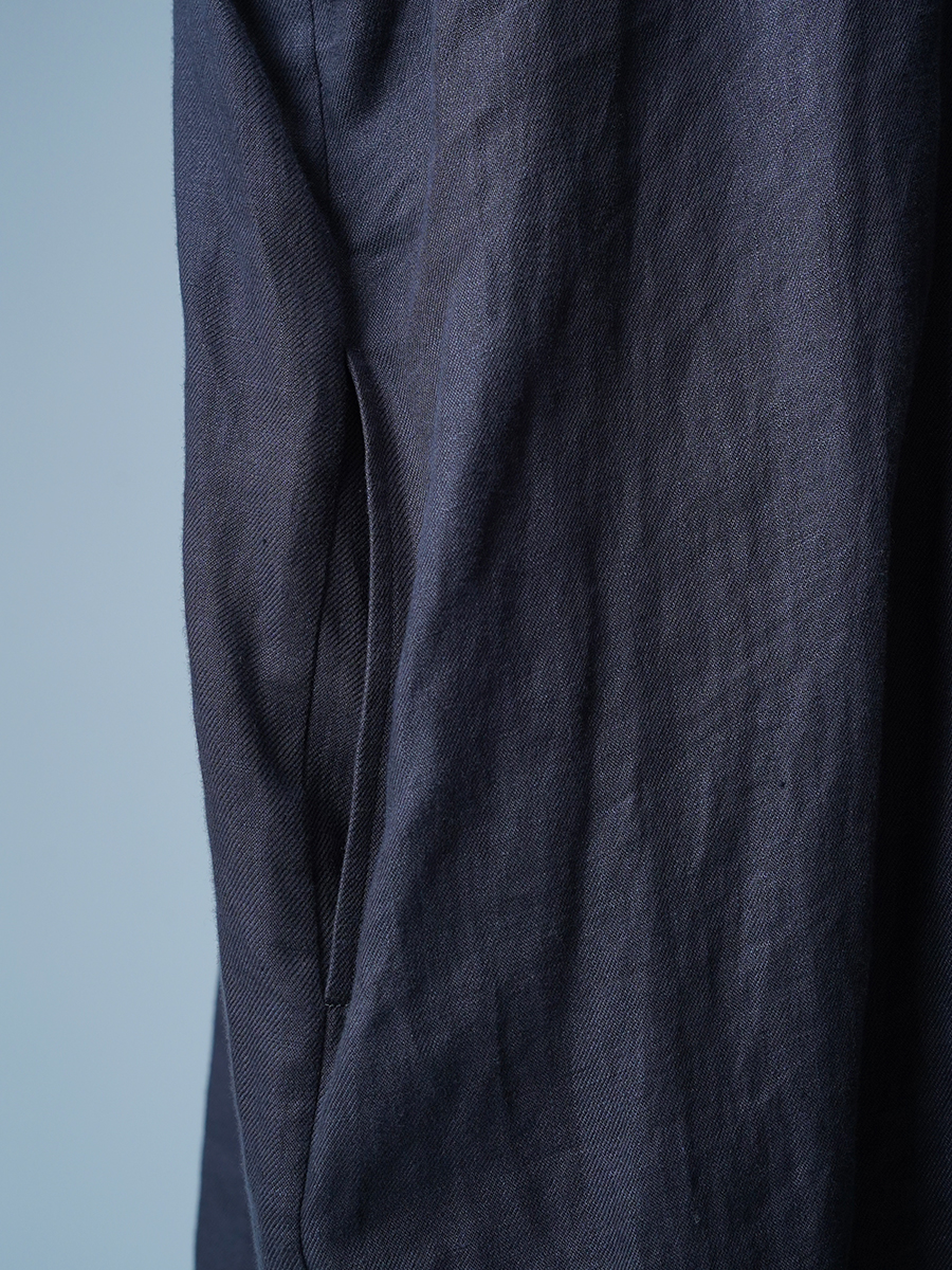 - ※生地工場の生産時期によって色味の濃淡が出ることがございます。セットアップでの着用の場合はご相談下さい。カラーリネンは最初色落ちや生地の性質上、毛羽落ちがある場合がございます。落ち着くまで数回は単品でのお洗濯を。最初は水通しをおすすめします。表面の毛羽立ちがとれて、肌への刺激が極端に少なくなります。リネン特有のネップ、節がございます。