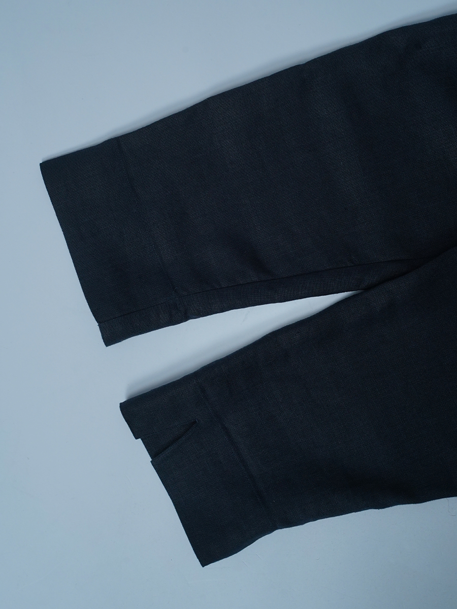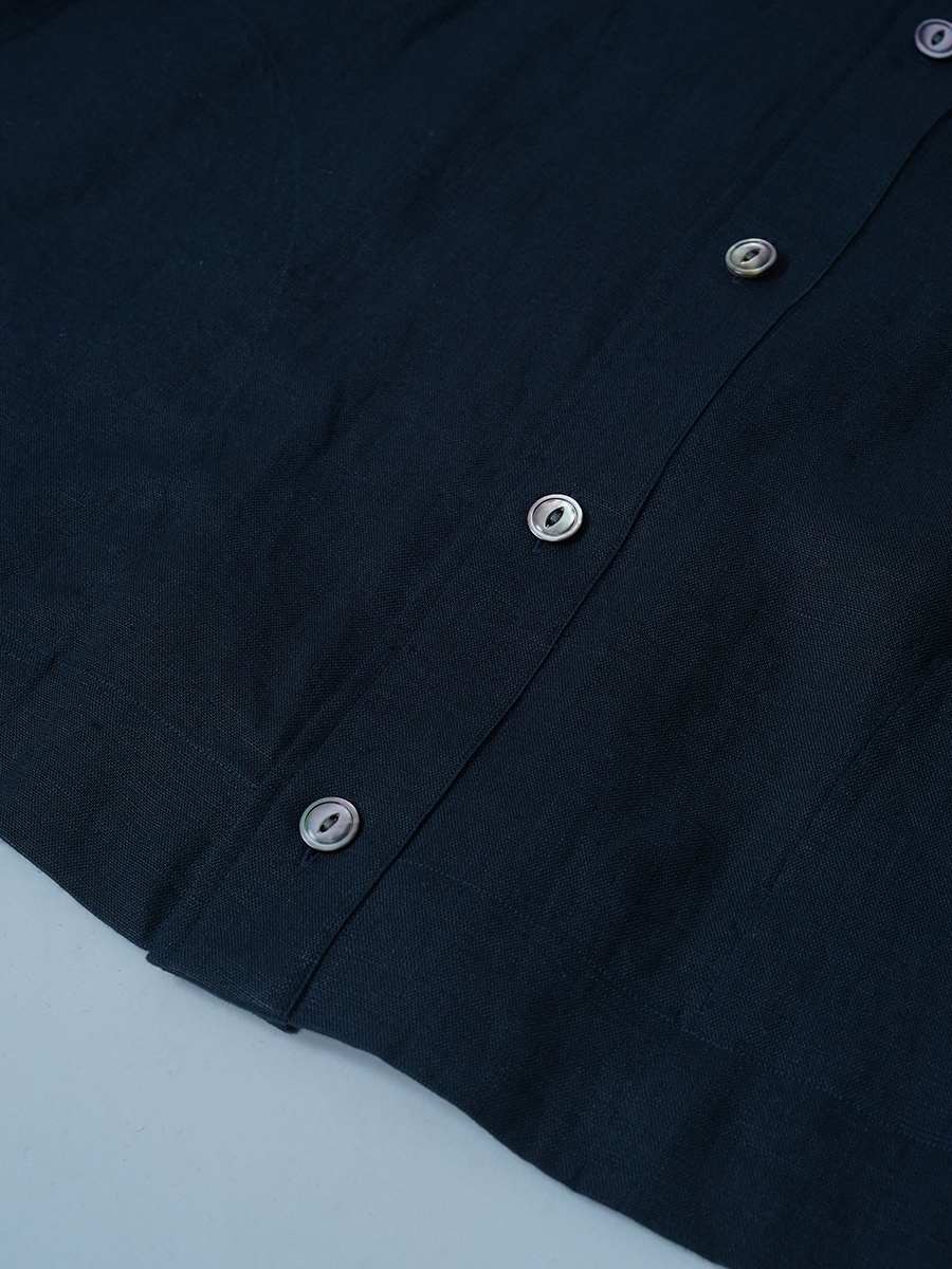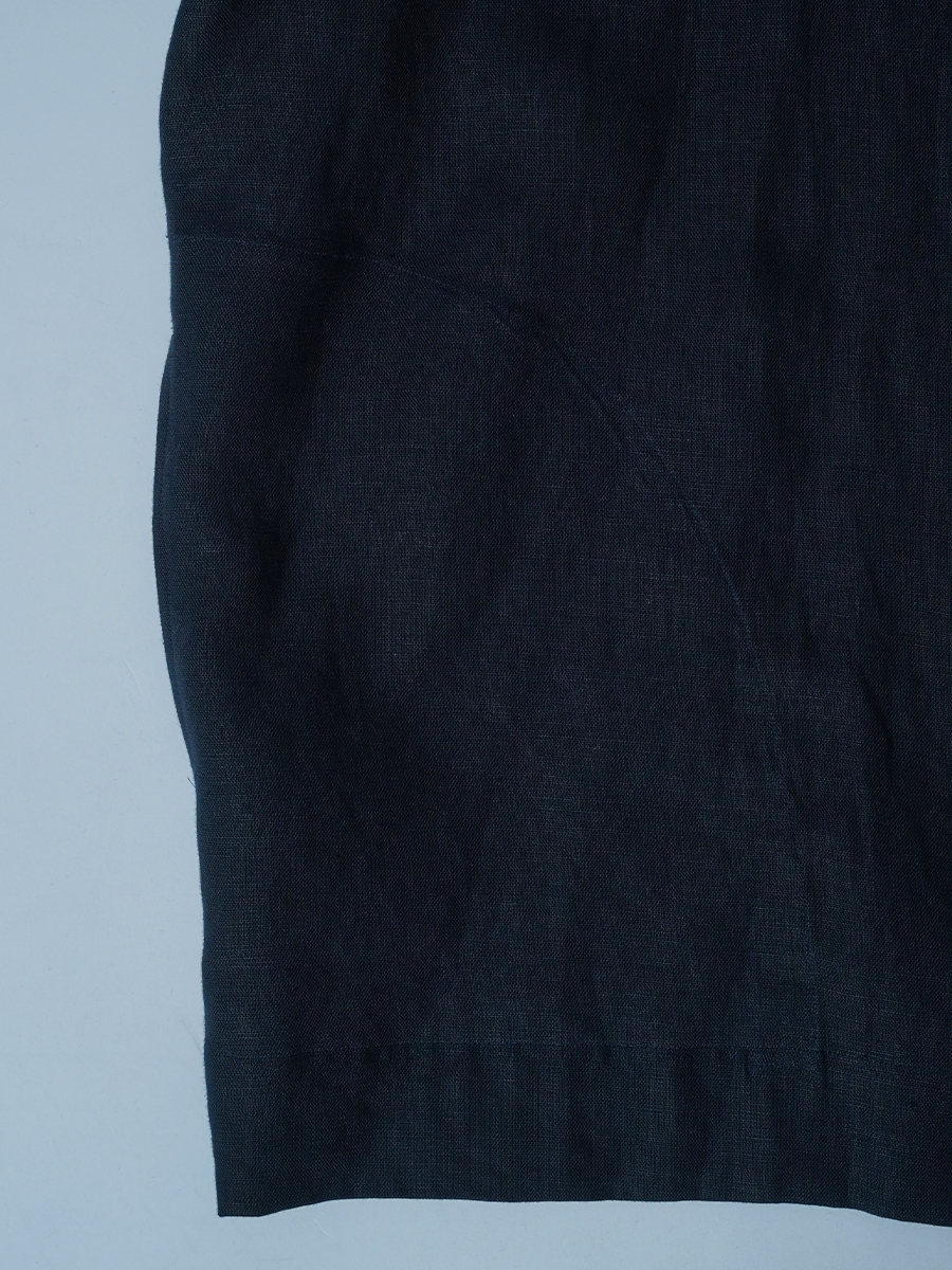- ※生地工場の生産時期によって色味の濃淡が出ることがございます。セットアップでの着用の場合はご相談下さい。カラーリネンは最初色落ちや生地の性質上、毛羽落ちがある場合がございます。落ち着くまで数回は単品でのお洗濯を。最初は水通しをおすすめします。表面の毛羽立ちがとれて、肌への刺激が極端に少なくなります。リネン特有のネップ、節がございます。