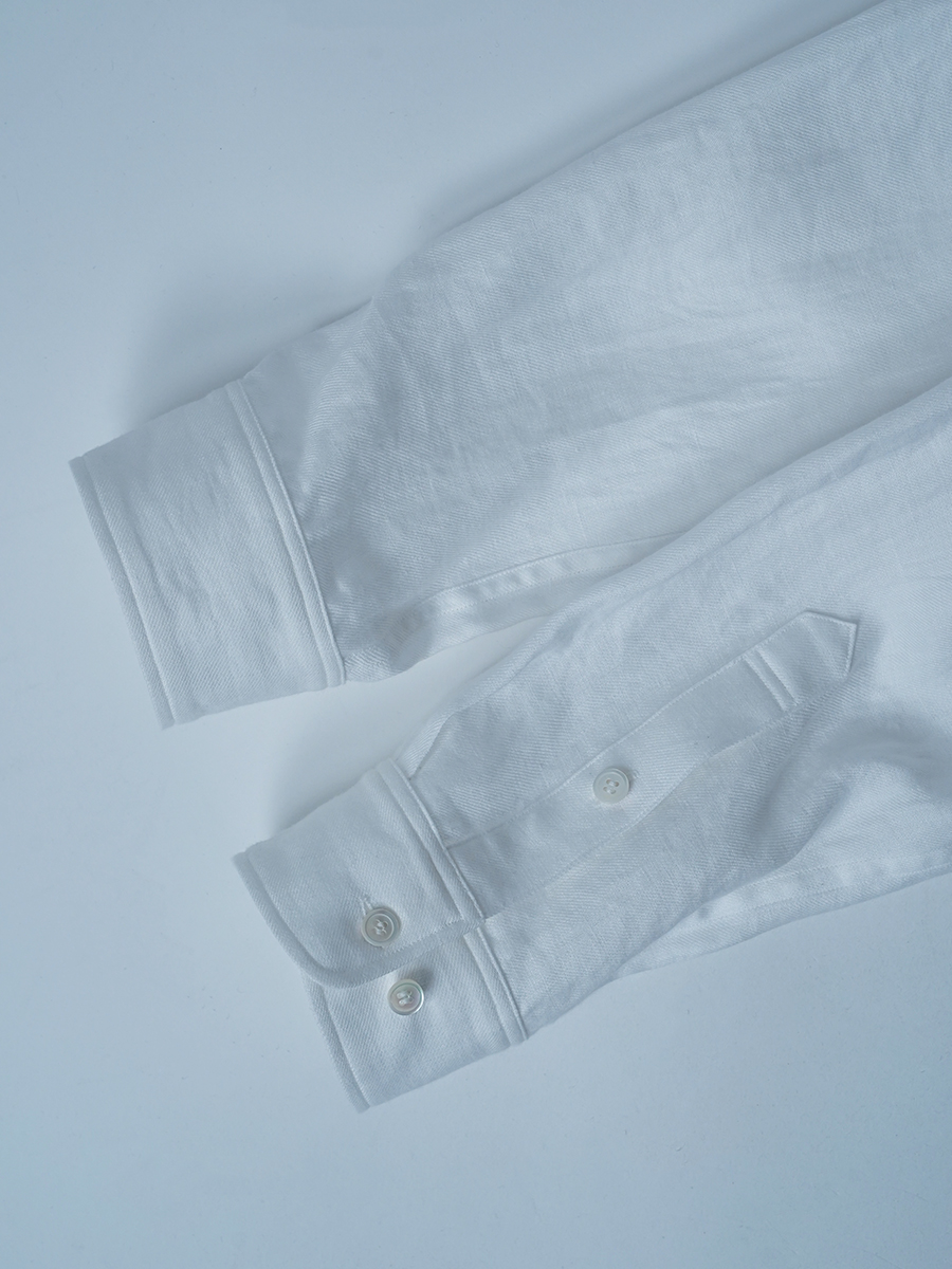- ※生地工場の生産時期によって色味の濃淡が出ることがございます。セットアップでの着用の場合はご相談下さい。カラーリネンは最初色落ちや生地の性質上、毛羽落ちがある場合がございます。落ち着くまで数回は単品でのお洗濯を。最初は水通しをおすすめします。表面の毛羽立ちがとれて、肌への刺激が極端に少なくなります。リネン特有のネップ、節がございます。