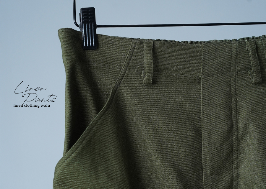 - ※生地工場の生産時期によって色味の濃淡が出ることがございます。セットアップでの着用の場合はご相談下さい。カラーリネンは最初色落ちや生地の性質上、毛羽落ちがある場合がございます。落ち着くまで数回は単品でのお洗濯を。最初は水通しをおすすめします。表面の毛羽立ちがとれて、肌への刺激が極端に少なくなります。リネン特有のネップ、節がございます。
