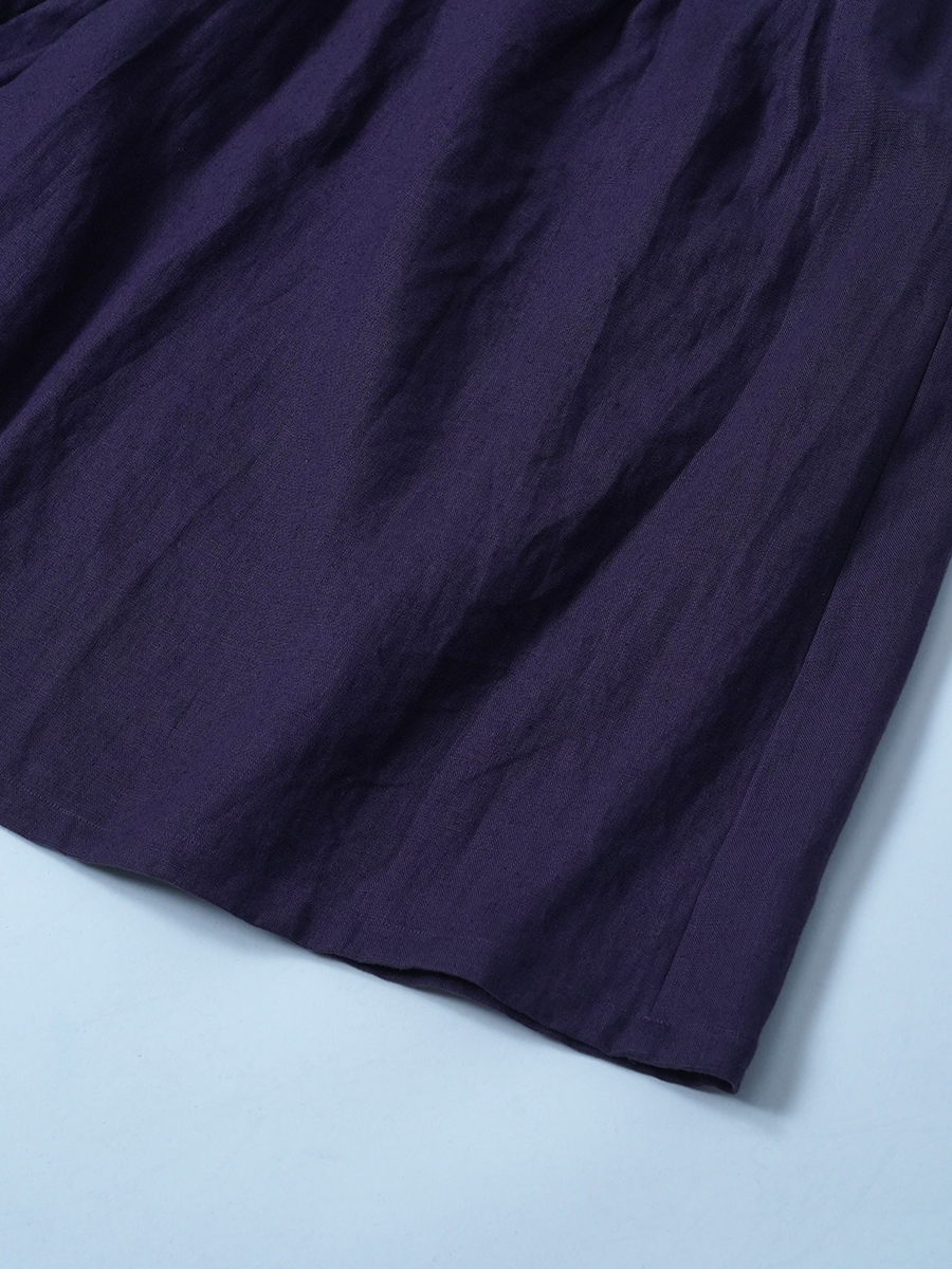 - ※生地工場の生産時期によって色味の濃淡が出ることがございます。セットアップでの着用の場合はご相談下さい。カラーリネンは最初色落ちや生地の性質上、毛羽落ちがある場合がございます。落ち着くまで数回は単品でのお洗濯を。最初は水通しをおすすめします。表面の毛羽立ちがとれて、肌への刺激が極端に少なくなります。リネン特有のネップ、節がございます。