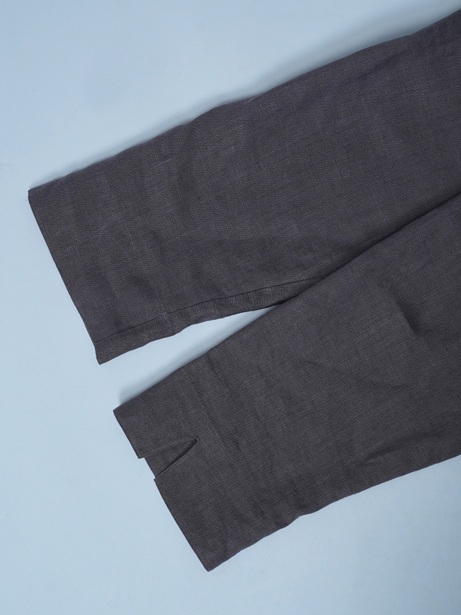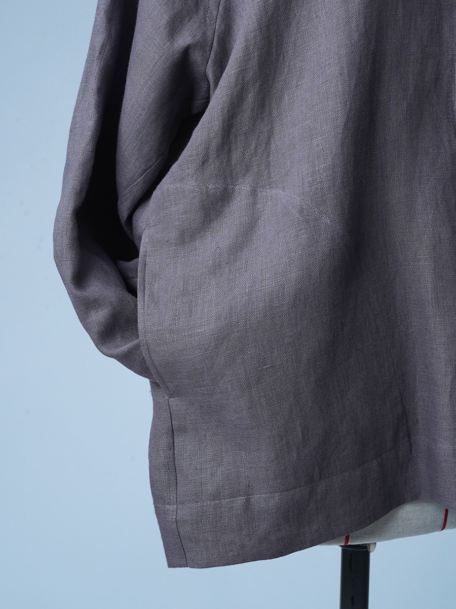 - ※生地工場の生産時期によって色味の濃淡が出ることがございます。セットアップでの着用の場合はご相談下さい。カラーリネンは最初色落ちや生地の性質上、毛羽落ちがある場合がございます。落ち着くまで数回は単品でのお洗濯を。最初は水通しをおすすめします。表面の毛羽立ちがとれて、肌への刺激が極端に少なくなります。リネン特有のネップ、節がございます。