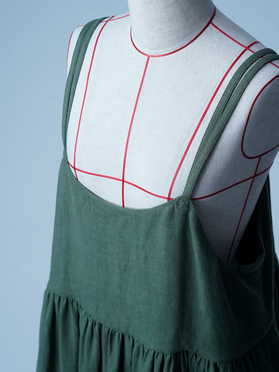 サイズの測り方→| サイズ | 胸囲 | 着丈 | 肩紐 | スカート丈 | 裾幅 |