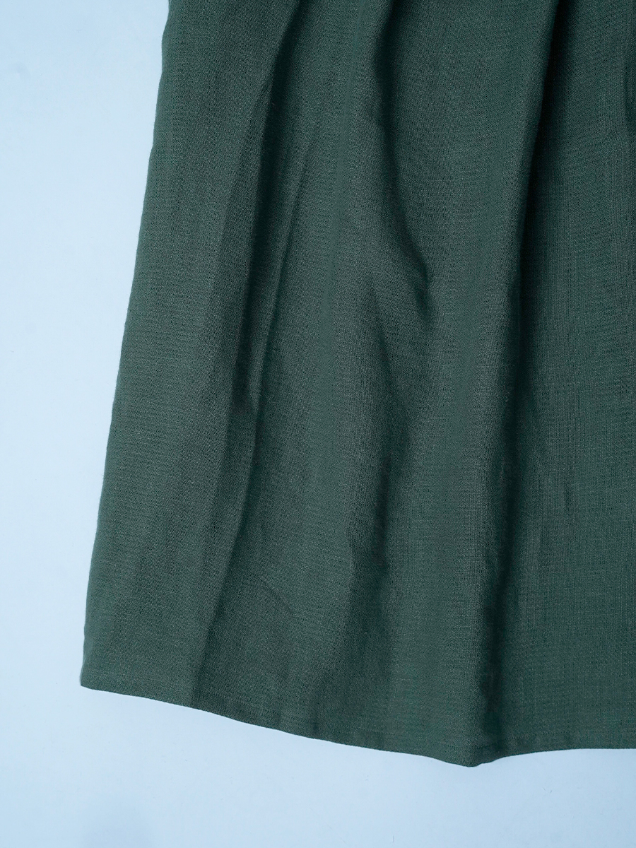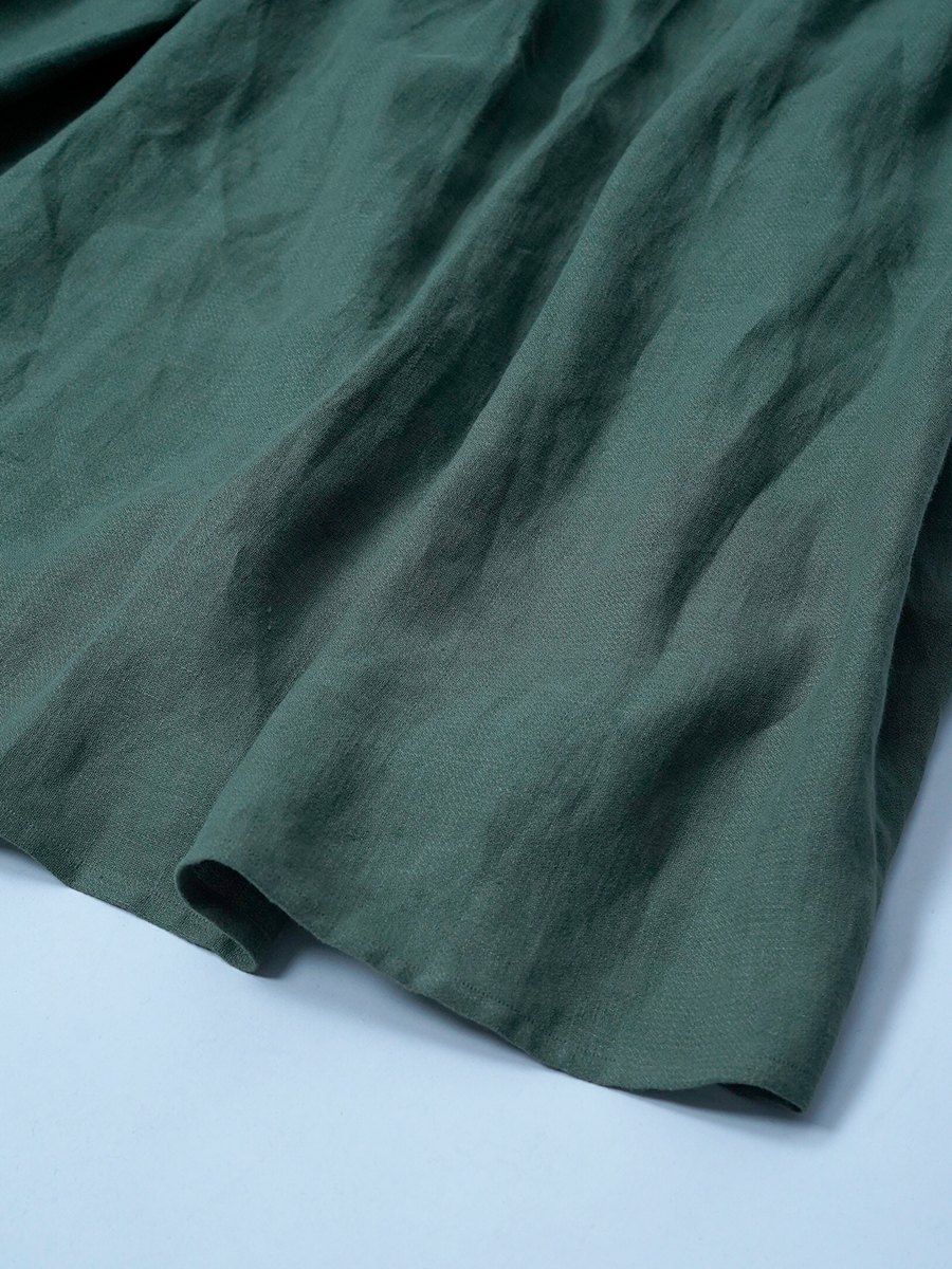 - ※生地工場の生産時期によって色味の濃淡が出ることがございます。セットアップでの着用の場合はご相談下さい。カラーリネンは最初色落ちや生地の性質上、毛羽落ちがある場合がございます。落ち着くまで数回は単品でのお洗濯を。最初は水通しをおすすめします。表面の毛羽立ちがとれて、肌への刺激が極端に少なくなります。リネン特有のネップ、節がございます。