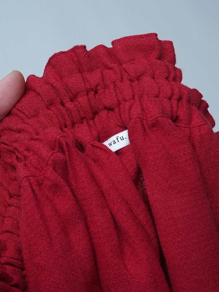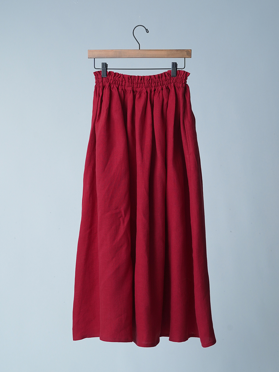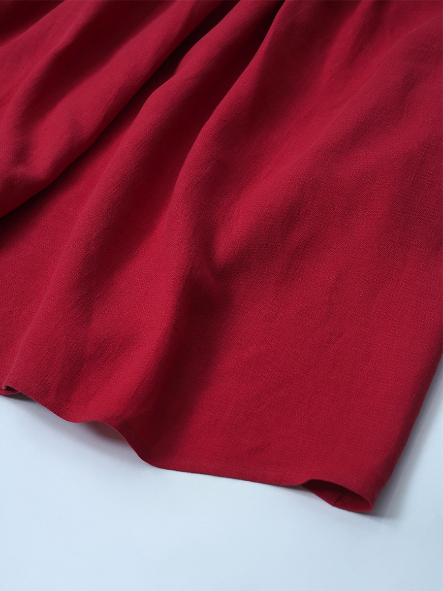 - ※生地工場の生産時期によって色味の濃淡が出ることがございます。セットアップでの着用の場合はご相談下さい。カラーリネンは最初色落ちや生地の性質上、毛羽落ちがある場合がございます。落ち着くまで数回は単品でのお洗濯を。最初は水通しをおすすめします。表面の毛羽立ちがとれて、肌への刺激が極端に少なくなります。リネン特有のネップ、節がございます。