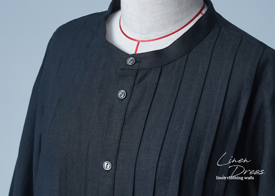 - ※生地工場の生産時期によって色味の濃淡が出ることがございます。セットアップでの着用の場合はご相談下さい。カラーリネンは最初色落ちや生地の性質上、毛羽落ちがある場合がございます。落ち着くまで数回は単品でのお洗濯を。最初は水通しをおすすめします。表面の毛羽立ちがとれて、肌への刺激が極端に少なくなります。リネン特有のネップ、節がございます。