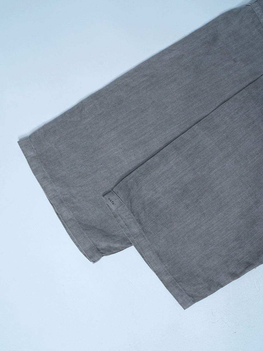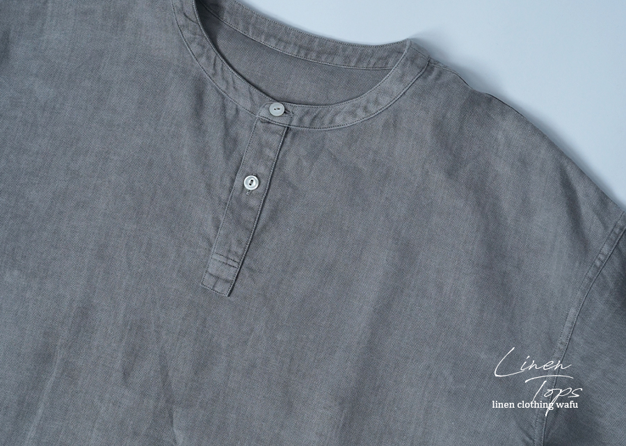 - ※生地工場の生産時期によって色味の濃淡が出ることがございます。セットアップでの着用の場合はご相談下さい。カラーリネンは最初色落ちや生地の性質上、毛羽落ちがある場合がございます。落ち着くまで数回は単品でのお洗濯を。最初は水通しをおすすめします。表面の毛羽立ちがとれて、肌への刺激が極端に少なくなります。リネン特有のネップ、節がございます。
