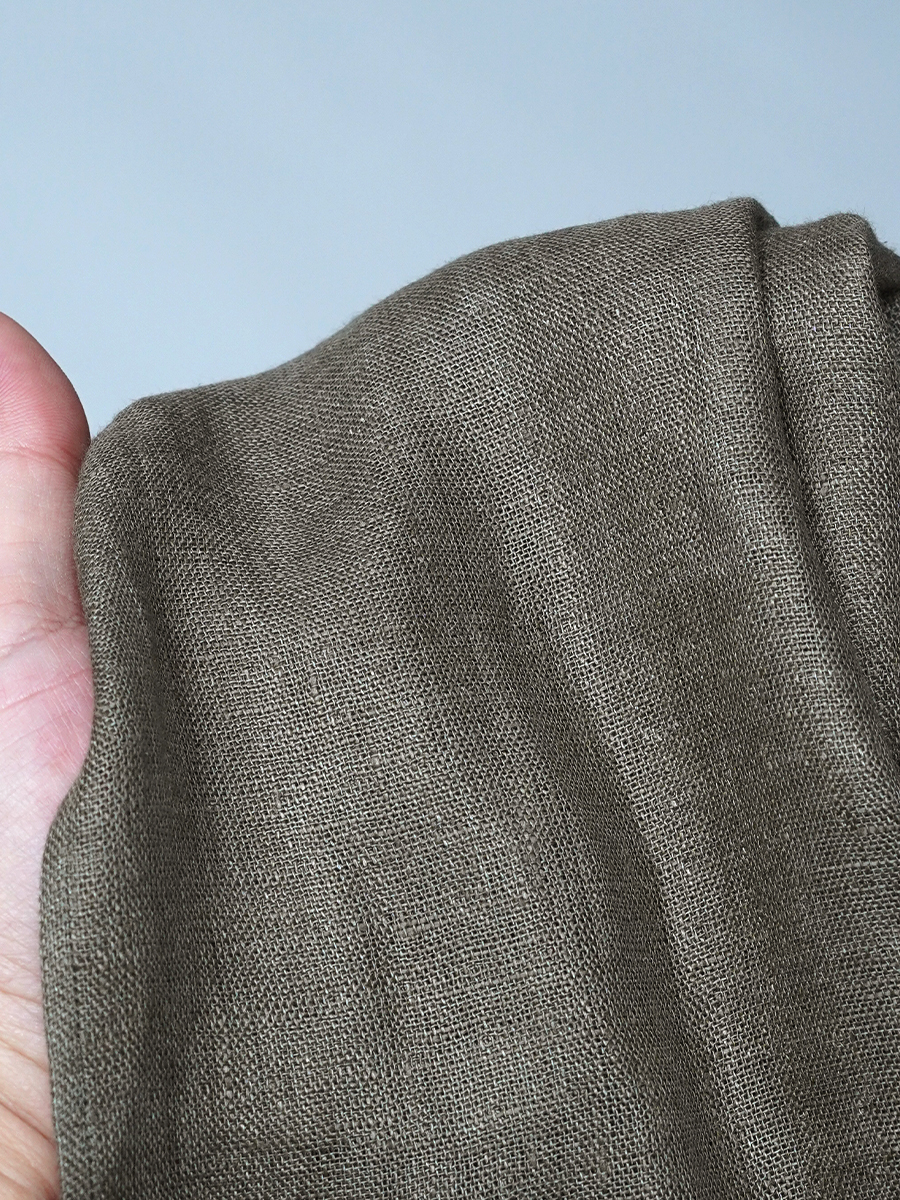 - ※生地工場の生産時期によって色味の濃淡が出ることがございます。セットアップでの着用の場合はご相談下さい。カラーリネンは最初色落ちや生地の性質上、毛羽落ちがある場合がございます。落ち着くまで数回は単品でのお洗濯を。最初は水通しをおすすめします。表面の毛羽立ちがとれて、肌への刺激が極端に少なくなります。リネン特有のネップ、節がございます。