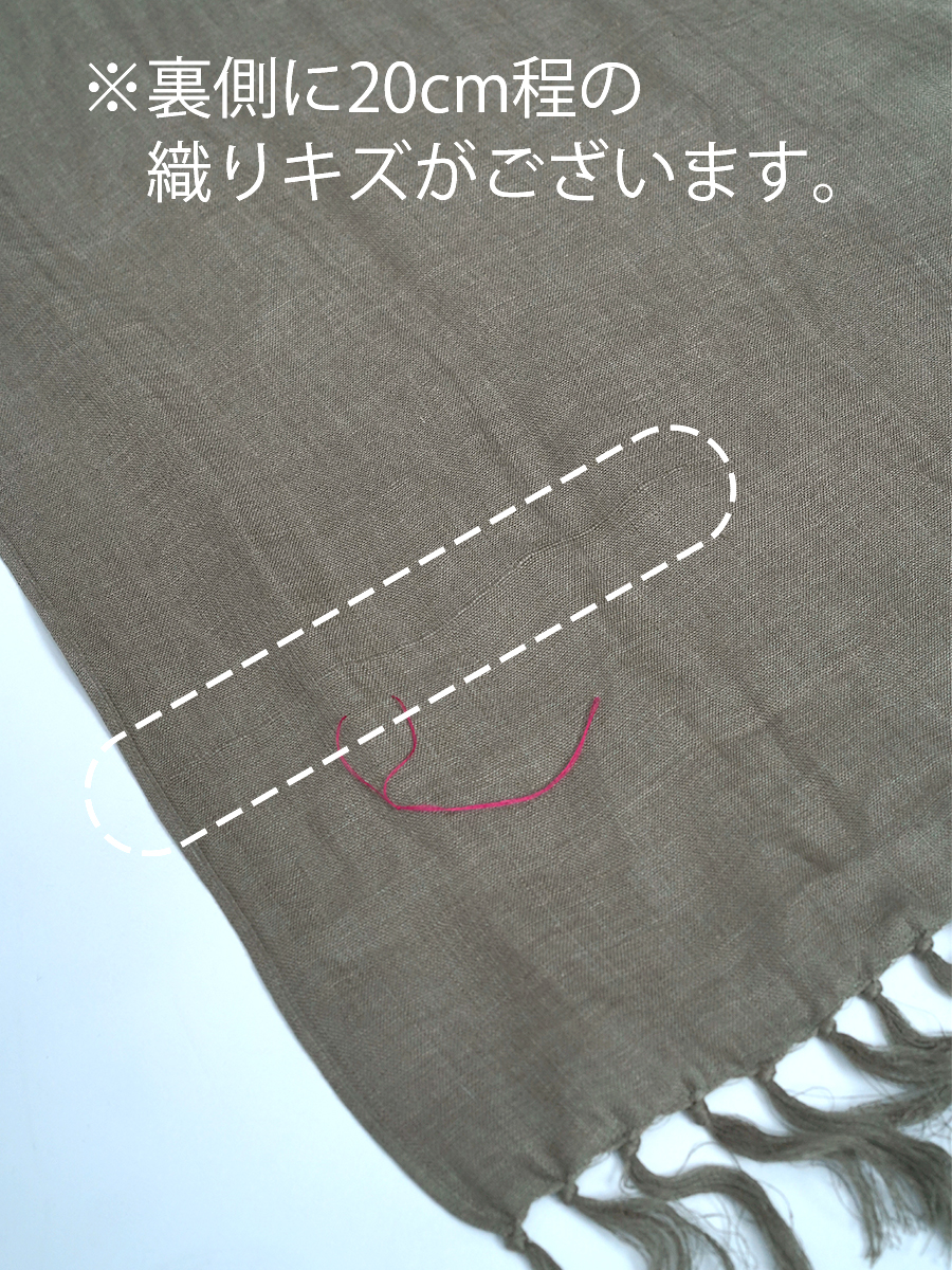 フリンジに近い辺りの裏側に太い糸混入がございます。