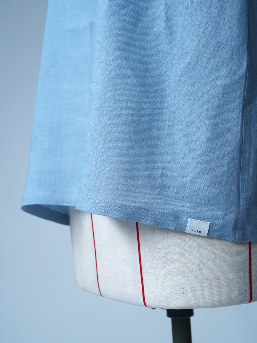 - ※生地工場の生産時期によって色味の濃淡が出ることがございます。セットアップでの着用の場合はご相談下さい。カラーリネンは最初色落ちや生地の性質上、毛羽落ちがある場合がございます。落ち着くまで数回は単品でのお洗濯を。最初は水通しをおすすめします。表面の毛羽立ちがとれて、肌への刺激が極端に少なくなります。リネン特有のネップ、節がございます。
