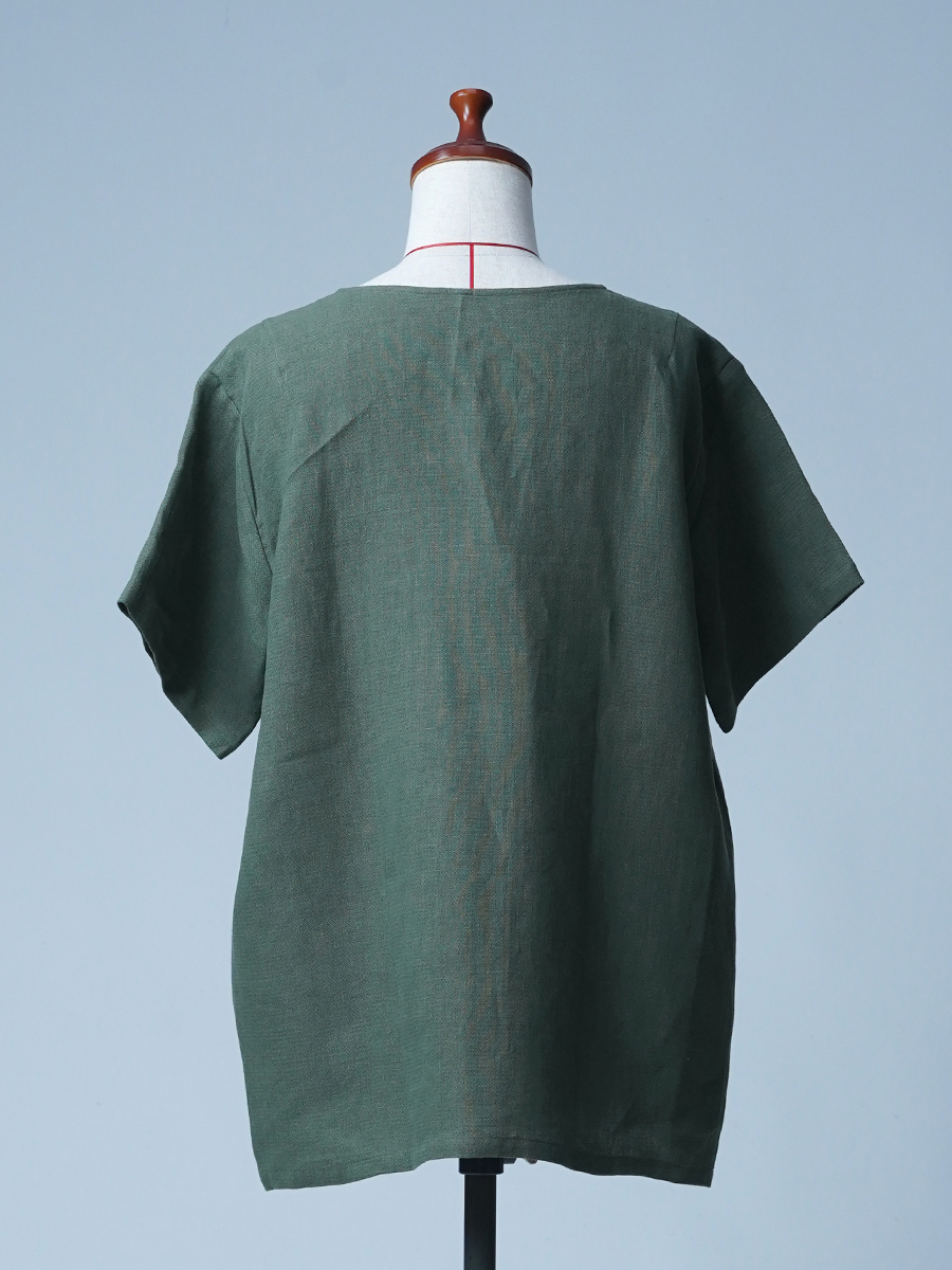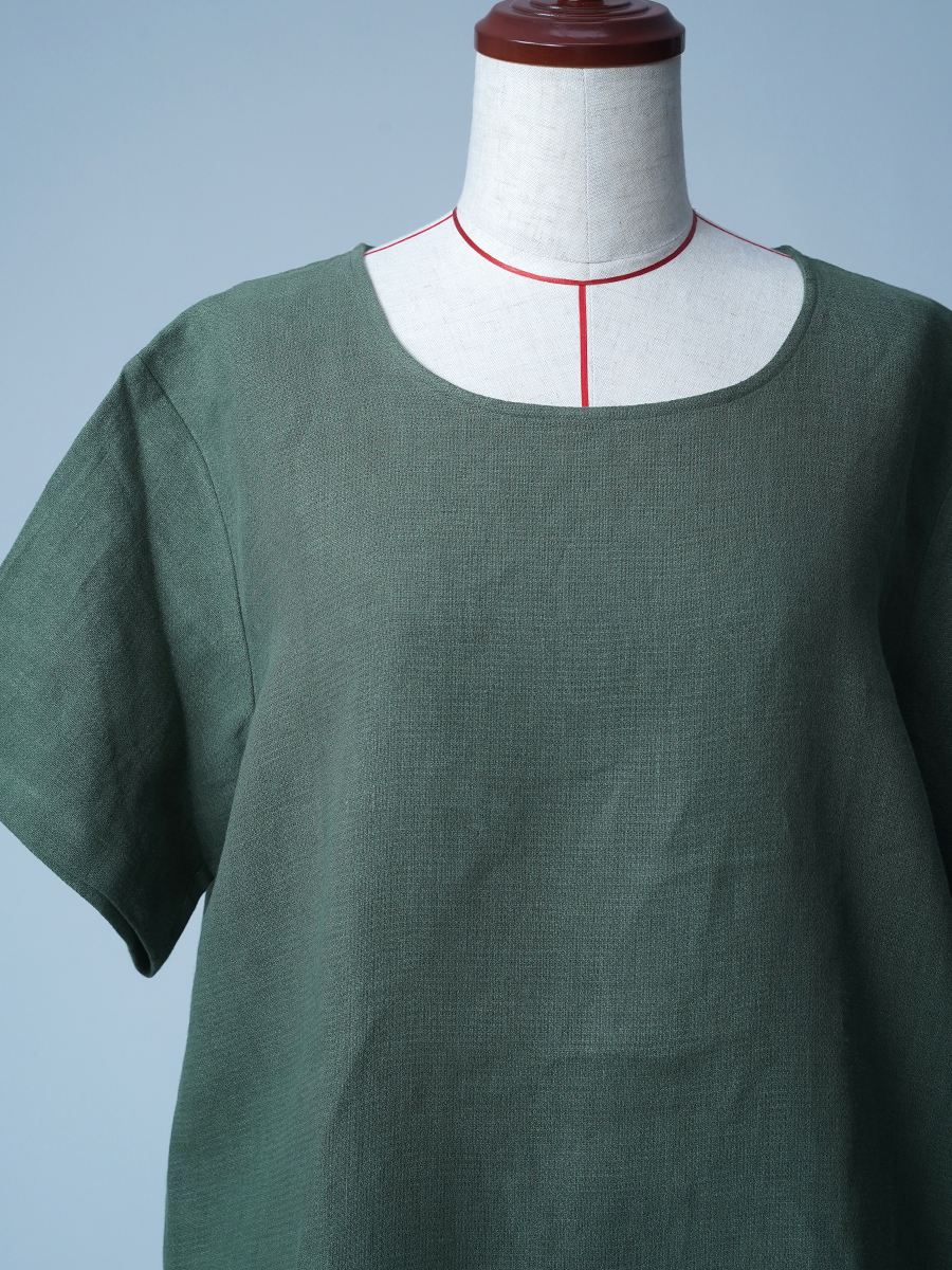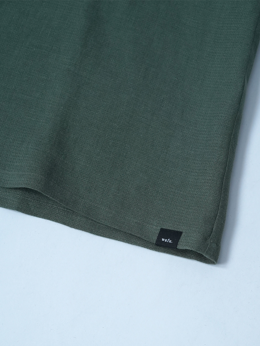- ※生地工場の生産時期によって色味の濃淡が出ることがございます。セットアップでの着用の場合はご相談下さい。カラーリネンは最初色落ちや生地の性質上、毛羽落ちがある場合がございます。落ち着くまで数回は単品でのお洗濯を。最初は水通しをおすすめします。表面の毛羽立ちがとれて、肌への刺激が極端に少なくなります。リネン特有のネップ、節がございます。