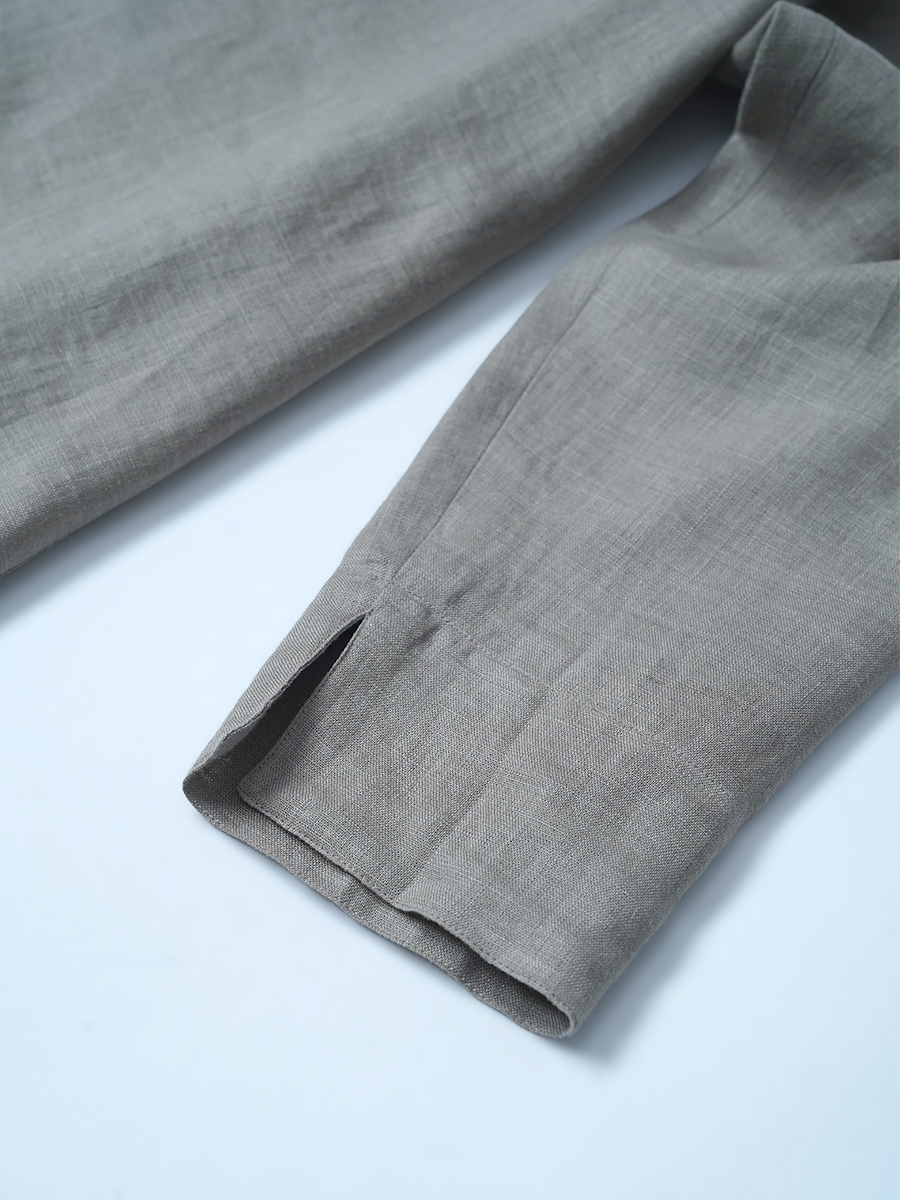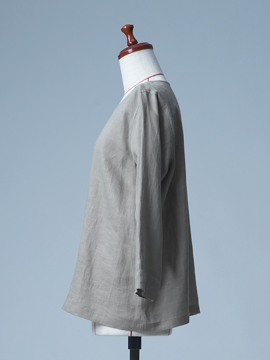 - ※生地工場の生産時期によって色味の濃淡が出ることがございます。セットアップでの着用の場合はご相談下さい。カラーリネンは最初色落ちや生地の性質上、毛羽落ちがある場合がございます。落ち着くまで数回は単品でのお洗濯を。最初は水通しをおすすめします。表面の毛羽立ちがとれて、肌への刺激が極端に少なくなります。リネン特有のネップ、節がございます。
