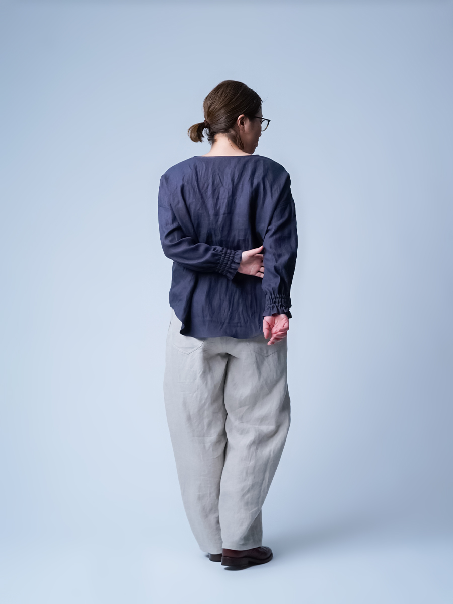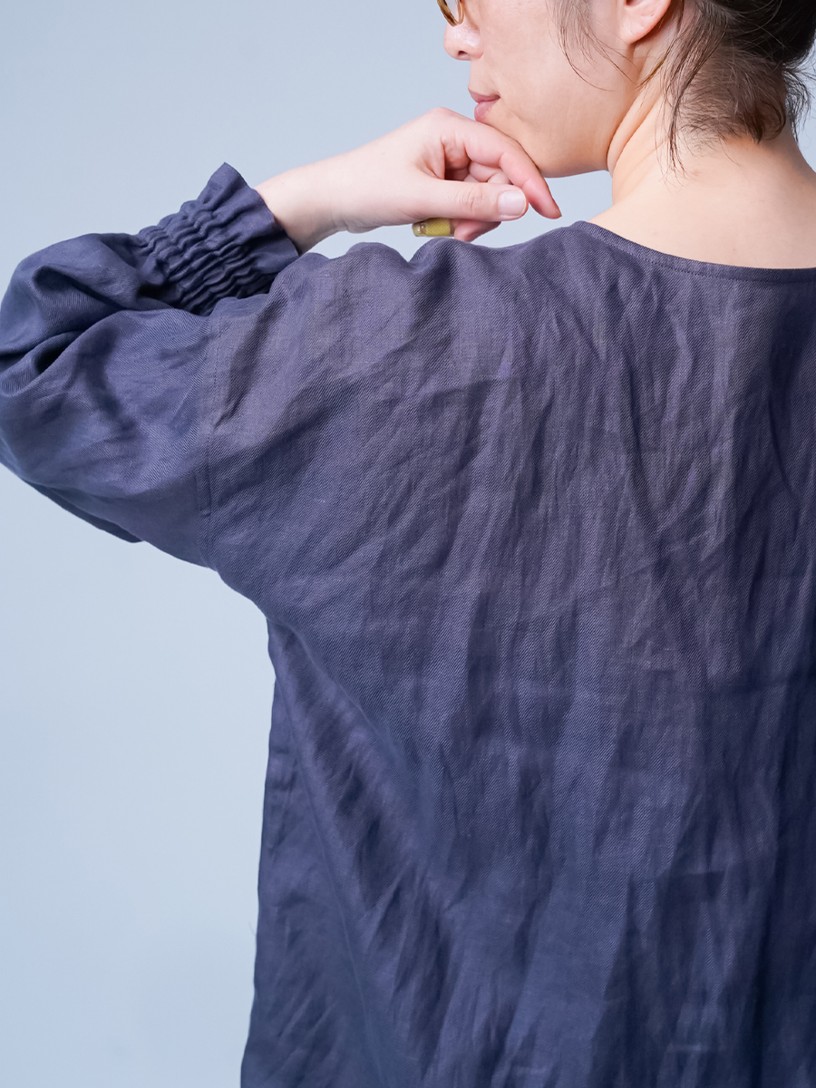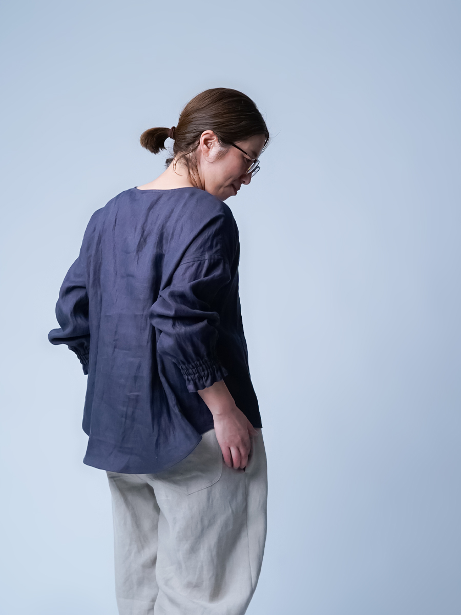 - ※生地工場の生産時期によって色味の濃淡が出ることがございます。セットアップでの着用の場合はご相談下さい。カラーリネンは最初色落ちや生地の性質上、毛羽落ちがある場合がございます。落ち着くまで数回は単品でのお洗濯を。最初は水通しをおすすめします。表面の毛羽立ちがとれて、肌への刺激が極端に少なくなります。リネン特有のネップ、節がございます。