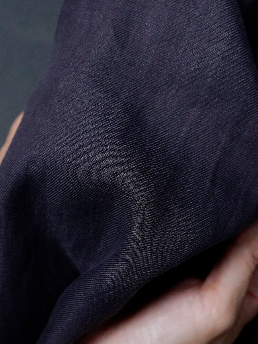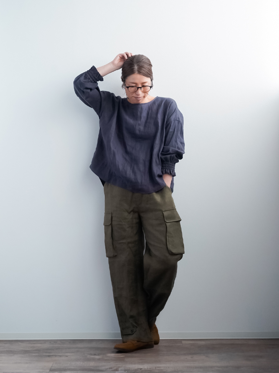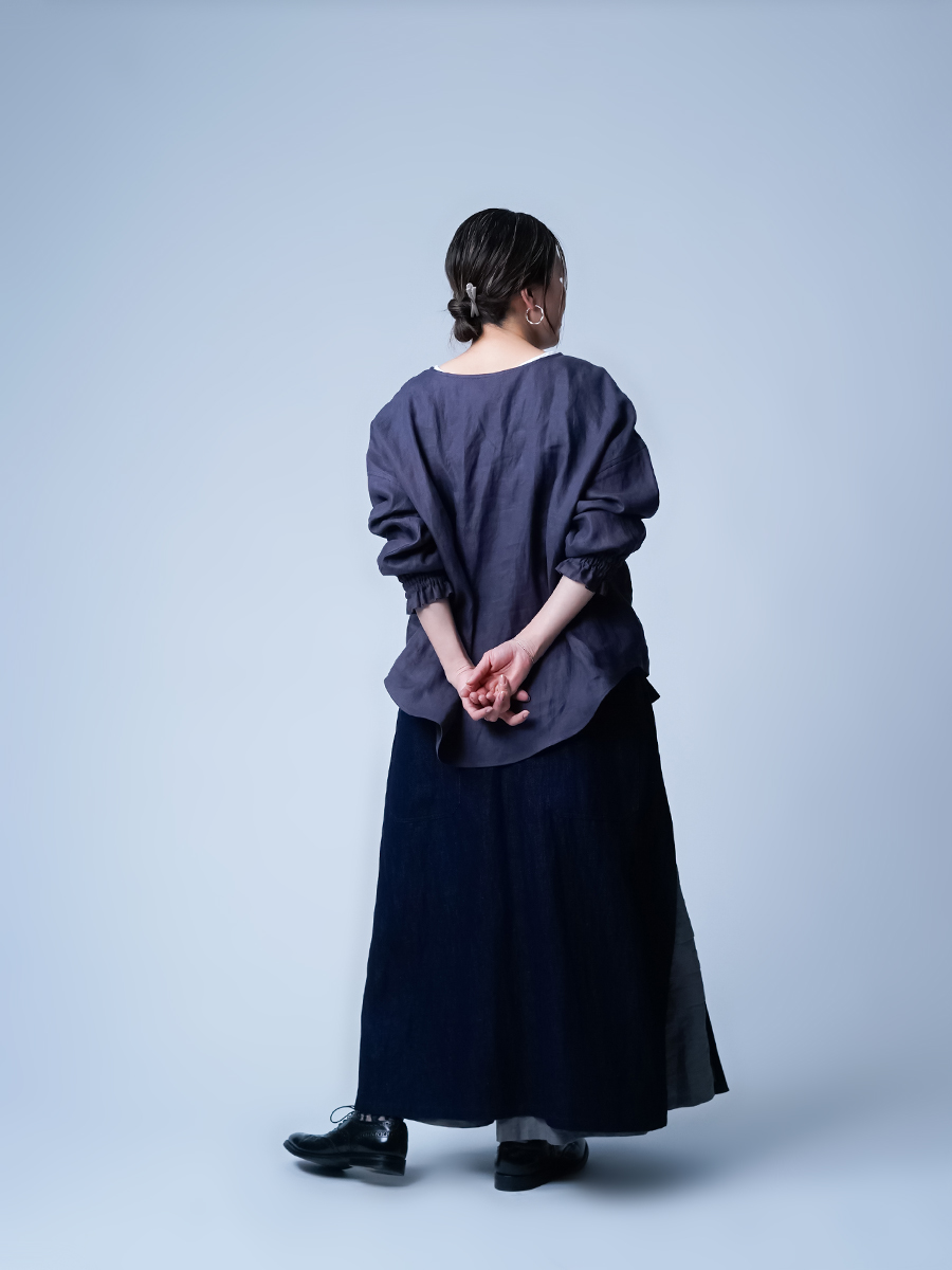 - ※生地工場の生産時期によって色味の濃淡が出ることがございます。セットアップでの着用の場合はご相談下さい。カラーリネンは最初色落ちや生地の性質上、毛羽落ちがある場合がございます。落ち着くまで数回は単品でのお洗濯を。最初は水通しをおすすめします。表面の毛羽立ちがとれて、肌への刺激が極端に少なくなります。リネン特有のネップ、節がございます。