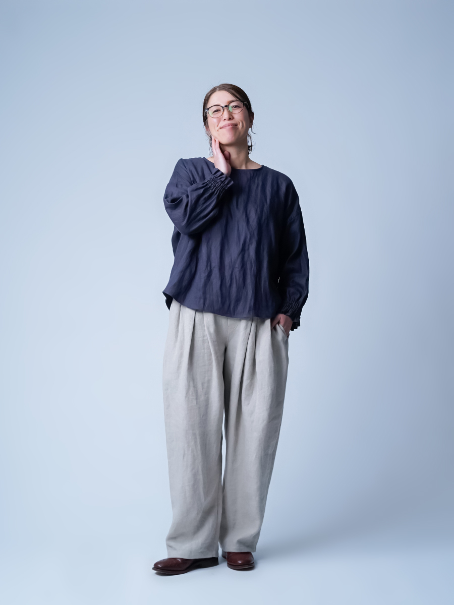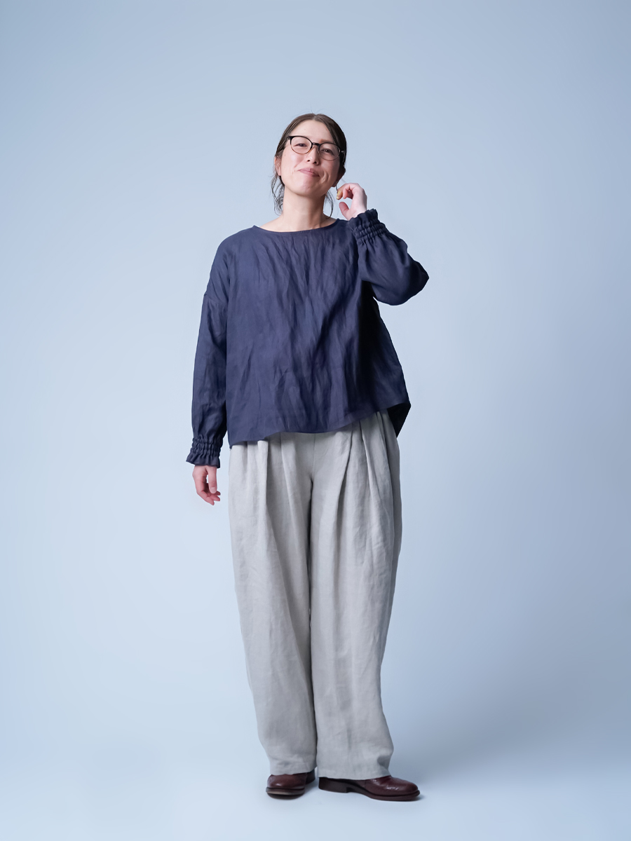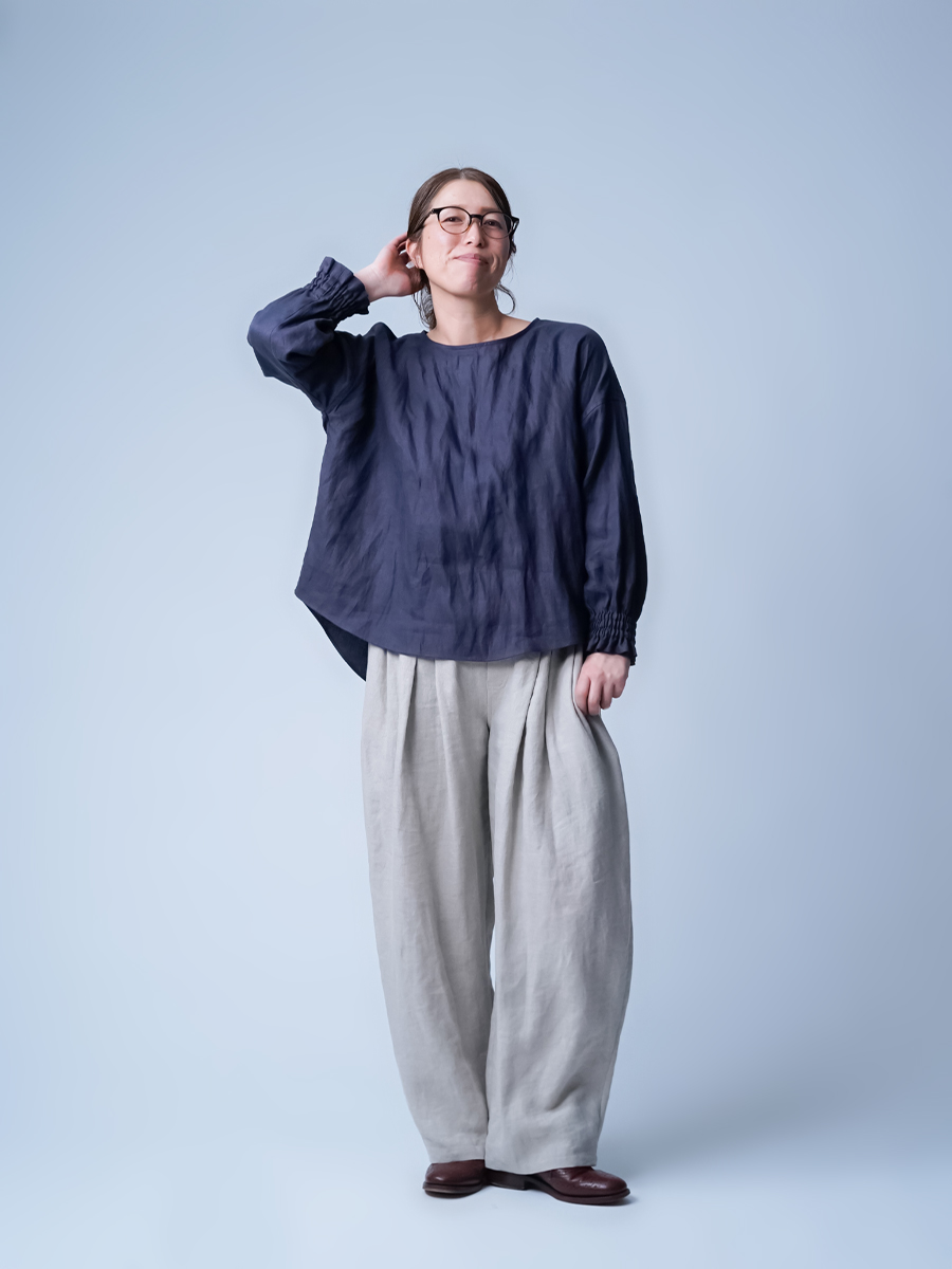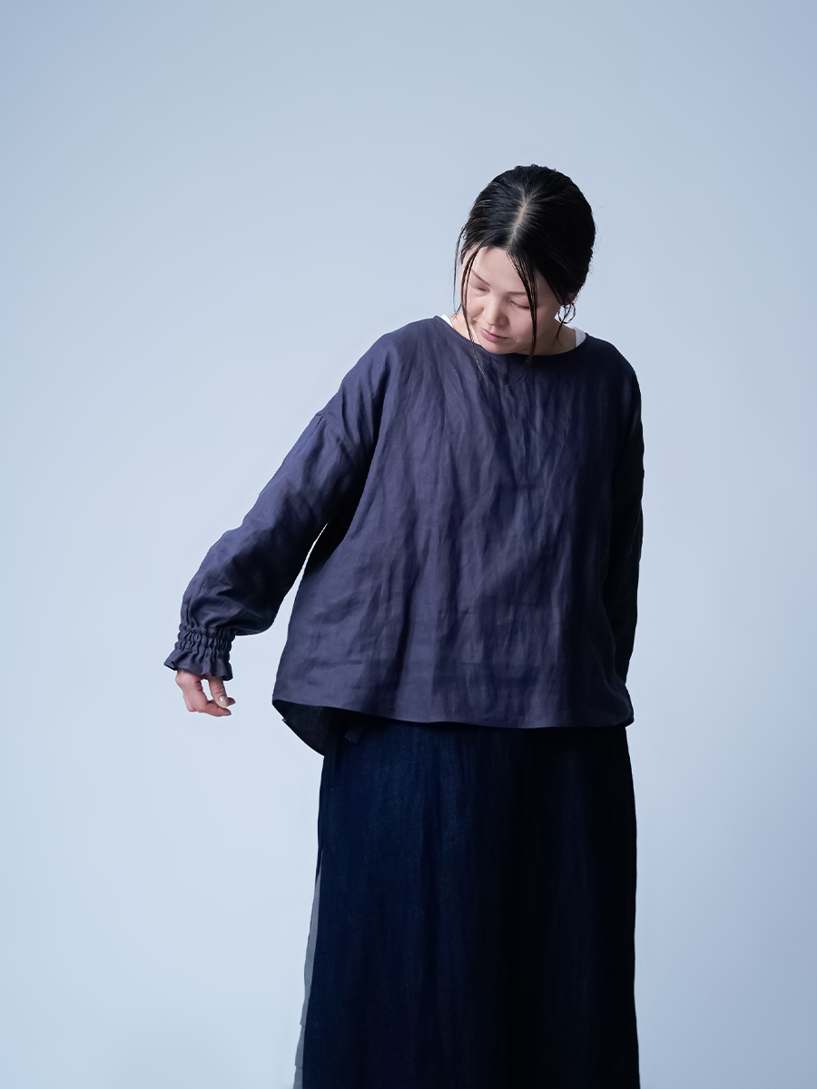 リネンらしい軽さがありながら、肌にふれる瞬間に伝わる密度。