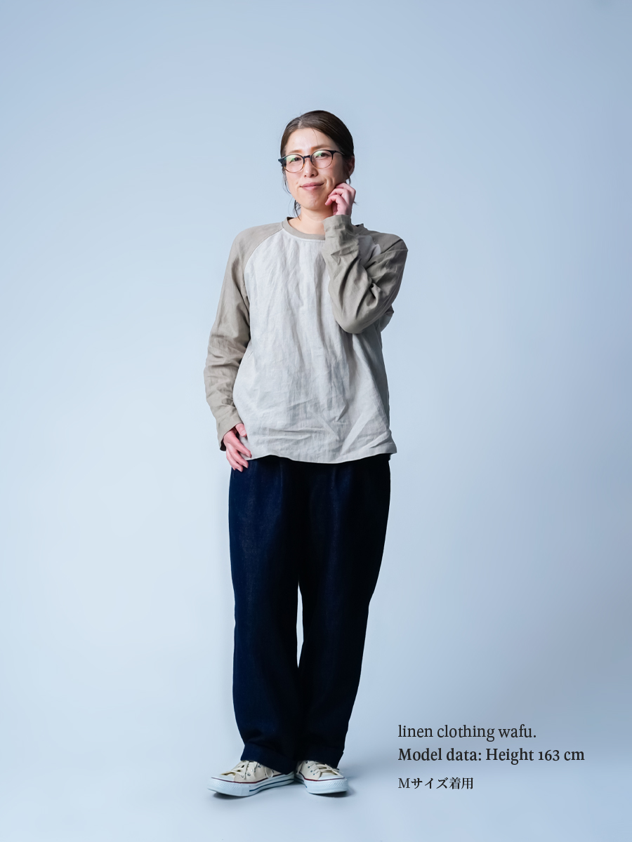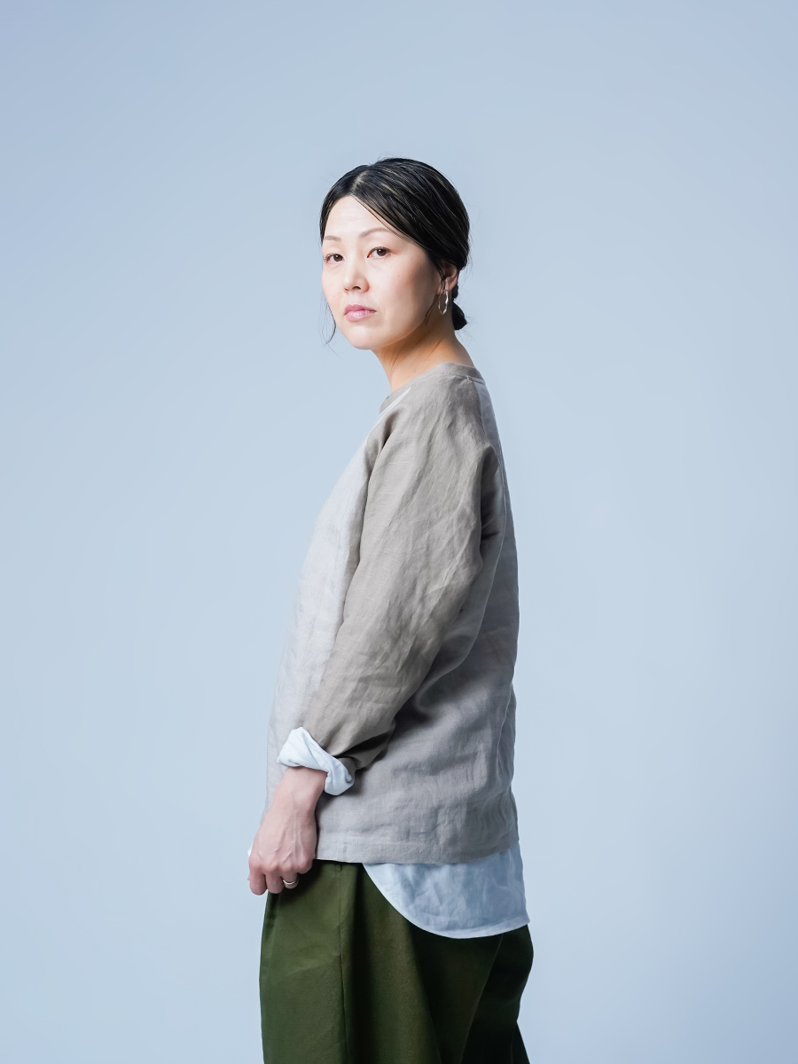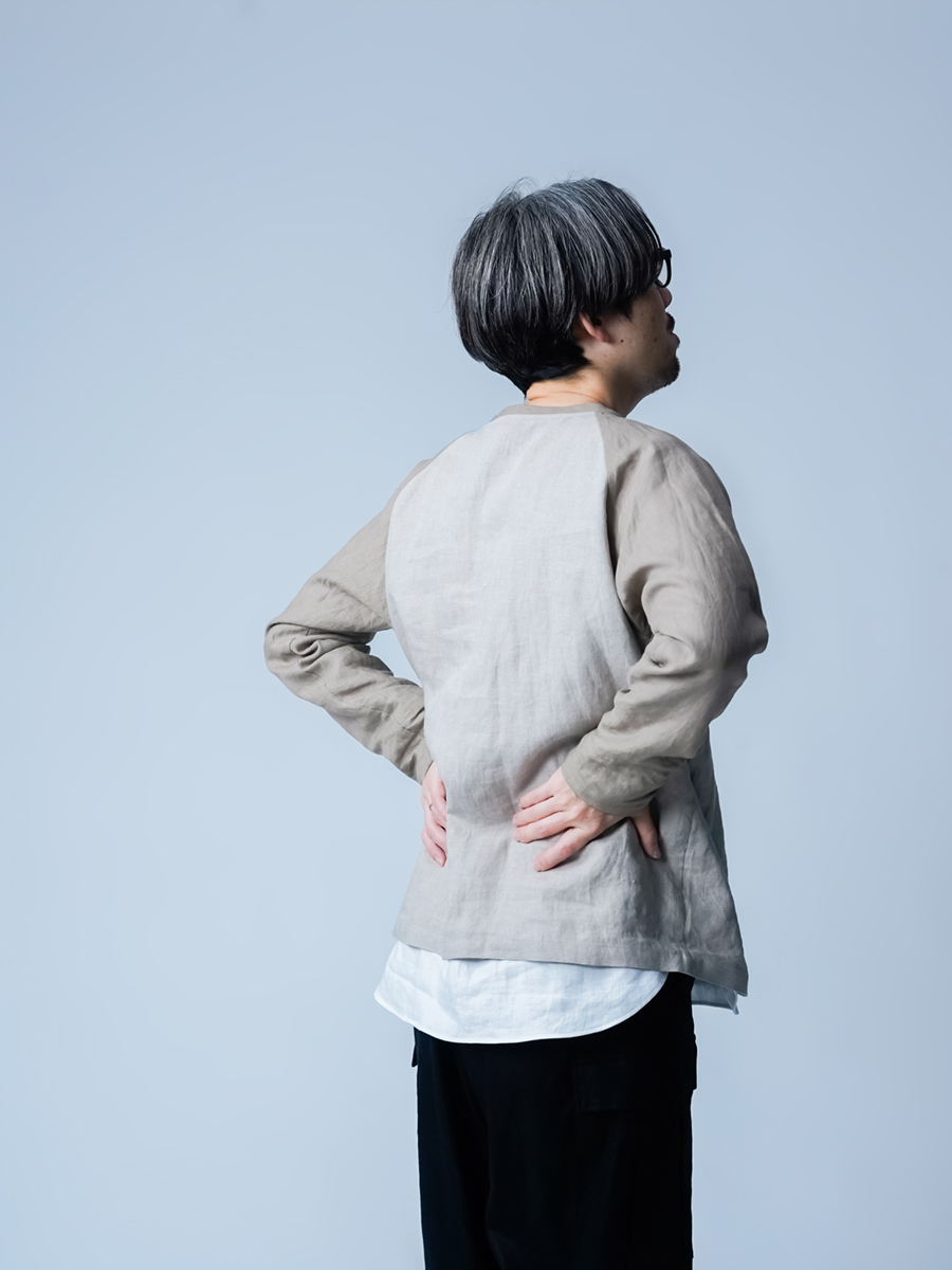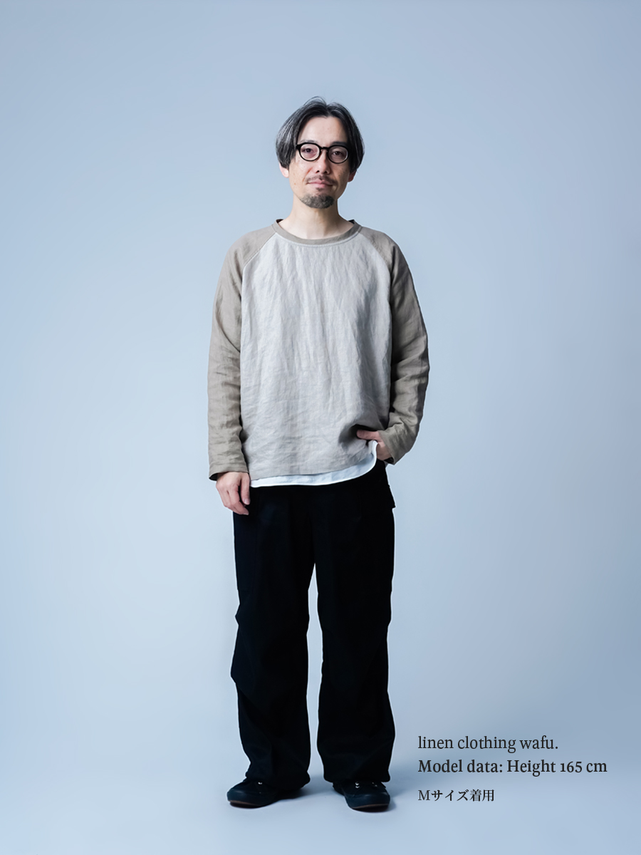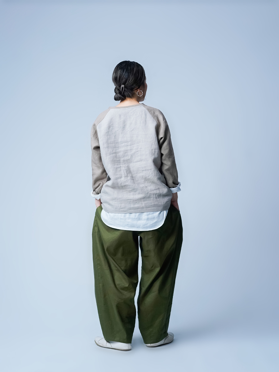 - ※生地工場の生産時期によって色味の濃淡が出ることがございます。セットアップでの着用の場合はご相談下さい。カラーリネンは最初色落ちや生地の性質上、毛羽落ちがある場合がございます。落ち着くまで数回は単品でのお洗濯を。最初は水通しをおすすめします。表面の毛羽立ちがとれて、肌への刺激が極端に少なくなります。リネン特有のネップ、節がございます。