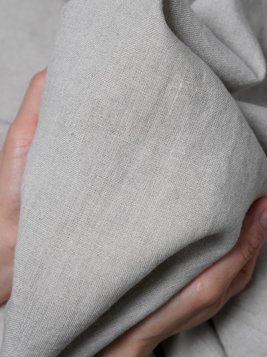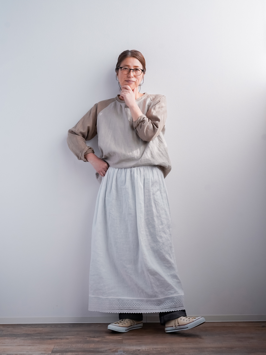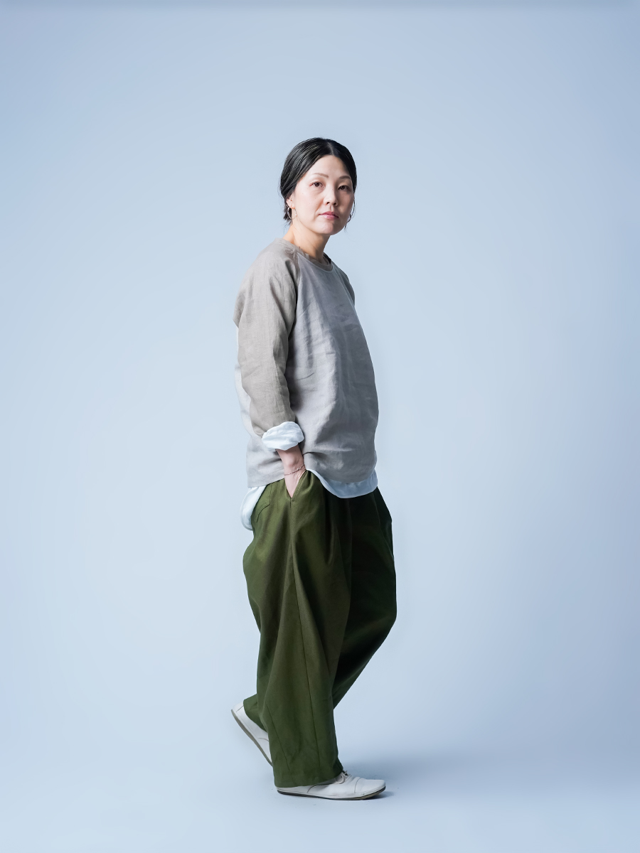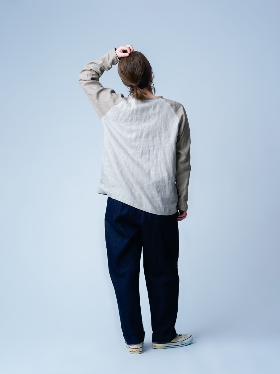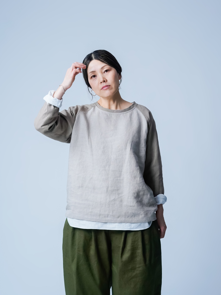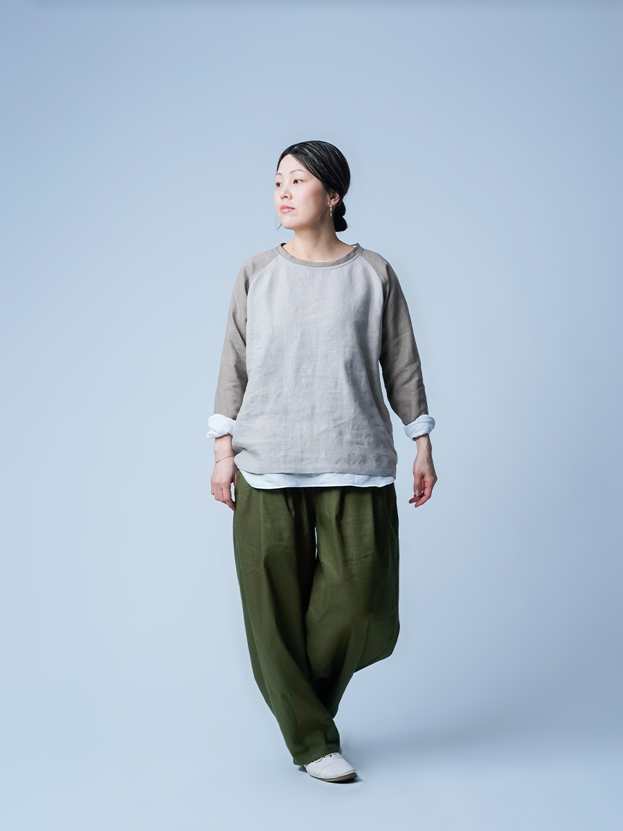 - ※生地工場の生産時期によって色味の濃淡が出ることがございます。セットアップでの着用の場合はご相談下さい。カラーリネンは最初色落ちや生地の性質上、毛羽落ちがある場合がございます。落ち着くまで数回は単品でのお洗濯を。最初は水通しをおすすめします。表面の毛羽立ちがとれて、肌への刺激が極端に少なくなります。リネン特有のネップ、節がございます。
