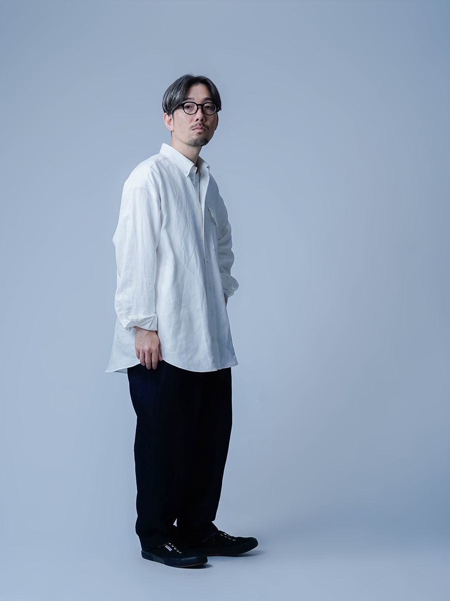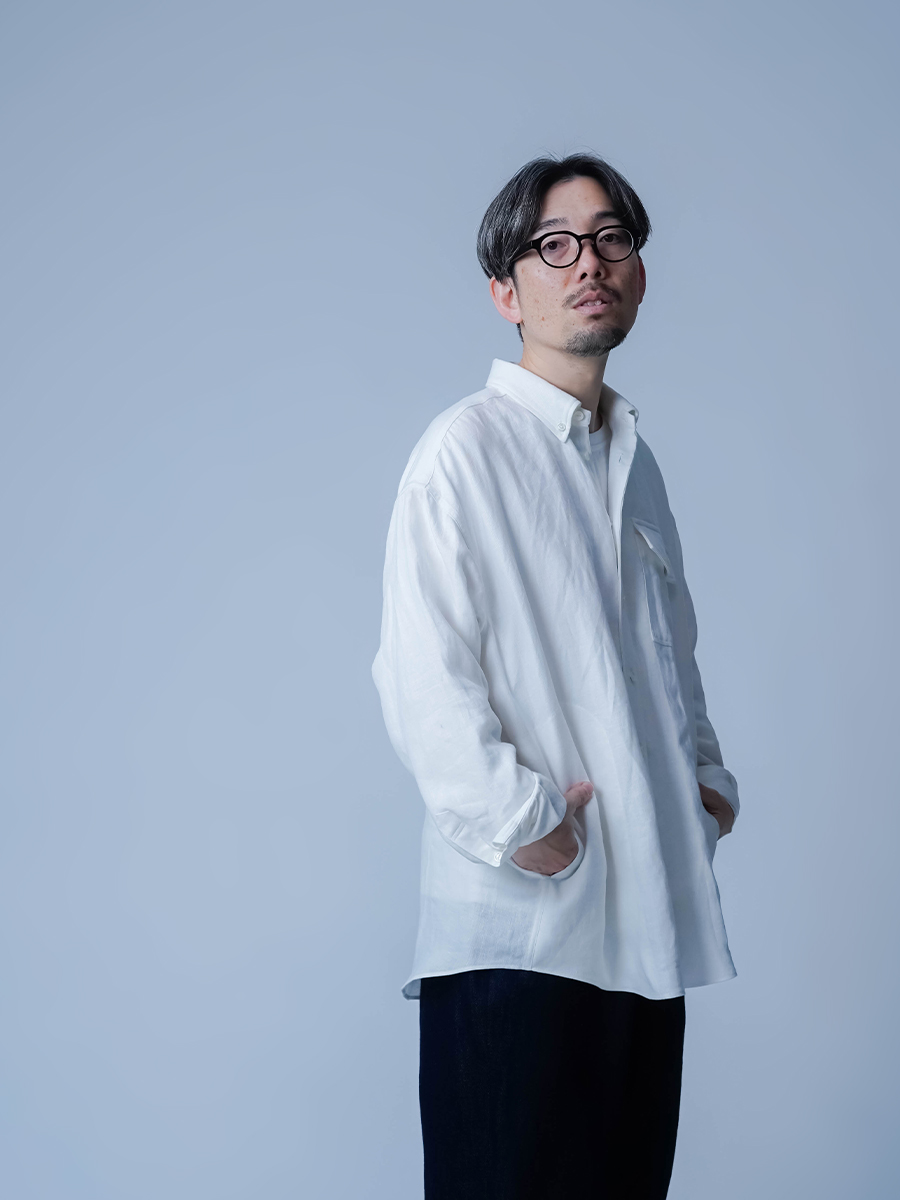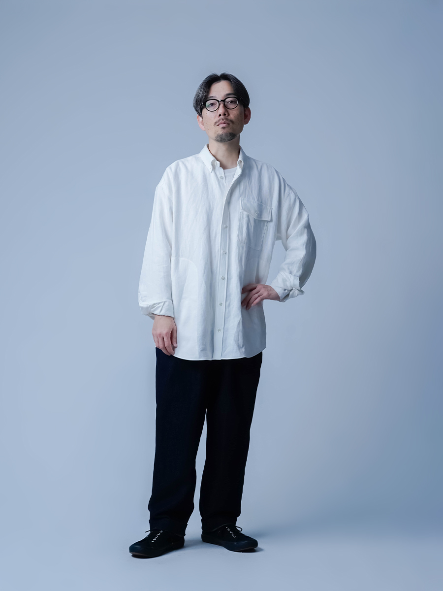 メンズライクのオーバーシャツで肩をドロップさせた仕様