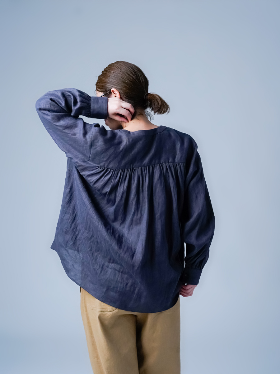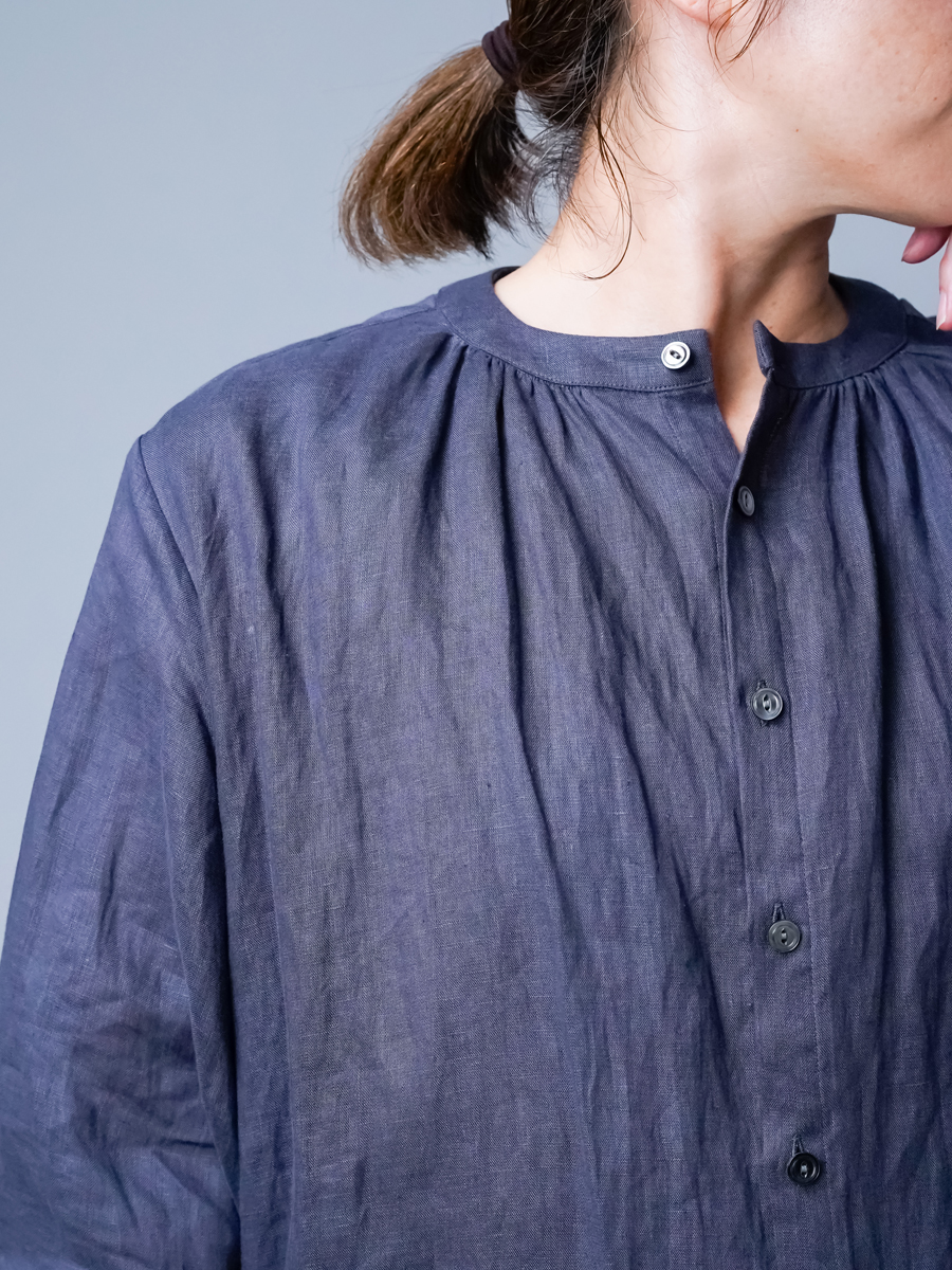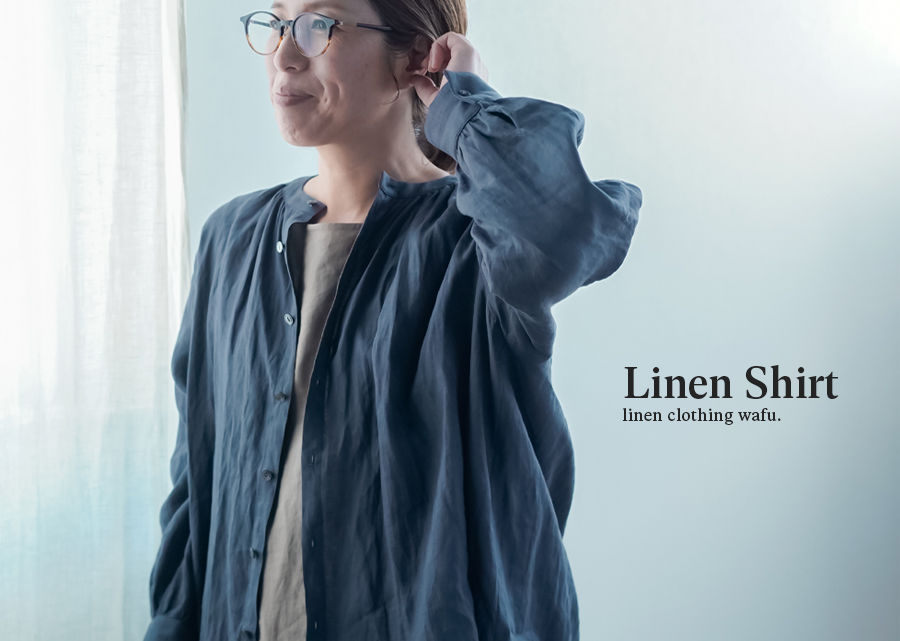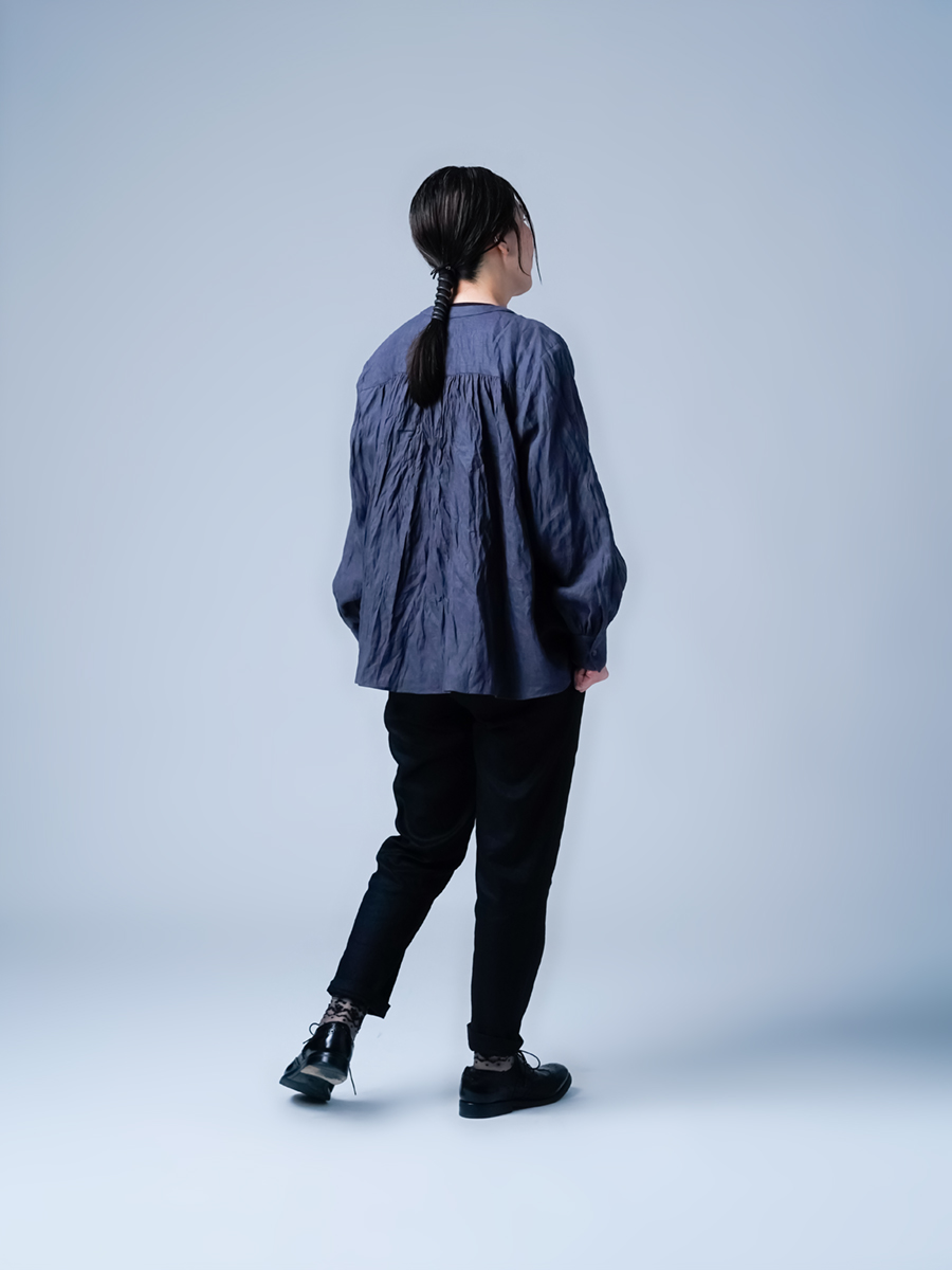 - ※生地工場の生産時期によって色味の濃淡が出ることがございます。セットアップでの着用の場合はご相談下さい。カラーリネンは最初色落ちや生地の性質上、毛羽落ちがある場合がございます。落ち着くまで数回は単品でのお洗濯を。最初は水通しをおすすめします。表面の毛羽立ちがとれて、肌への刺激が極端に少なくなります。リネン特有のネップ、節がございます。