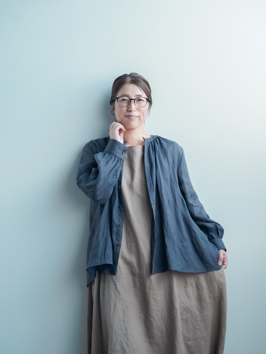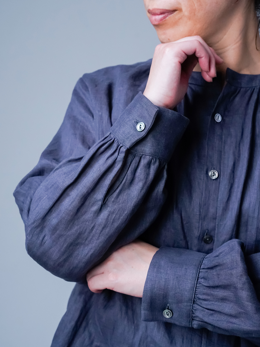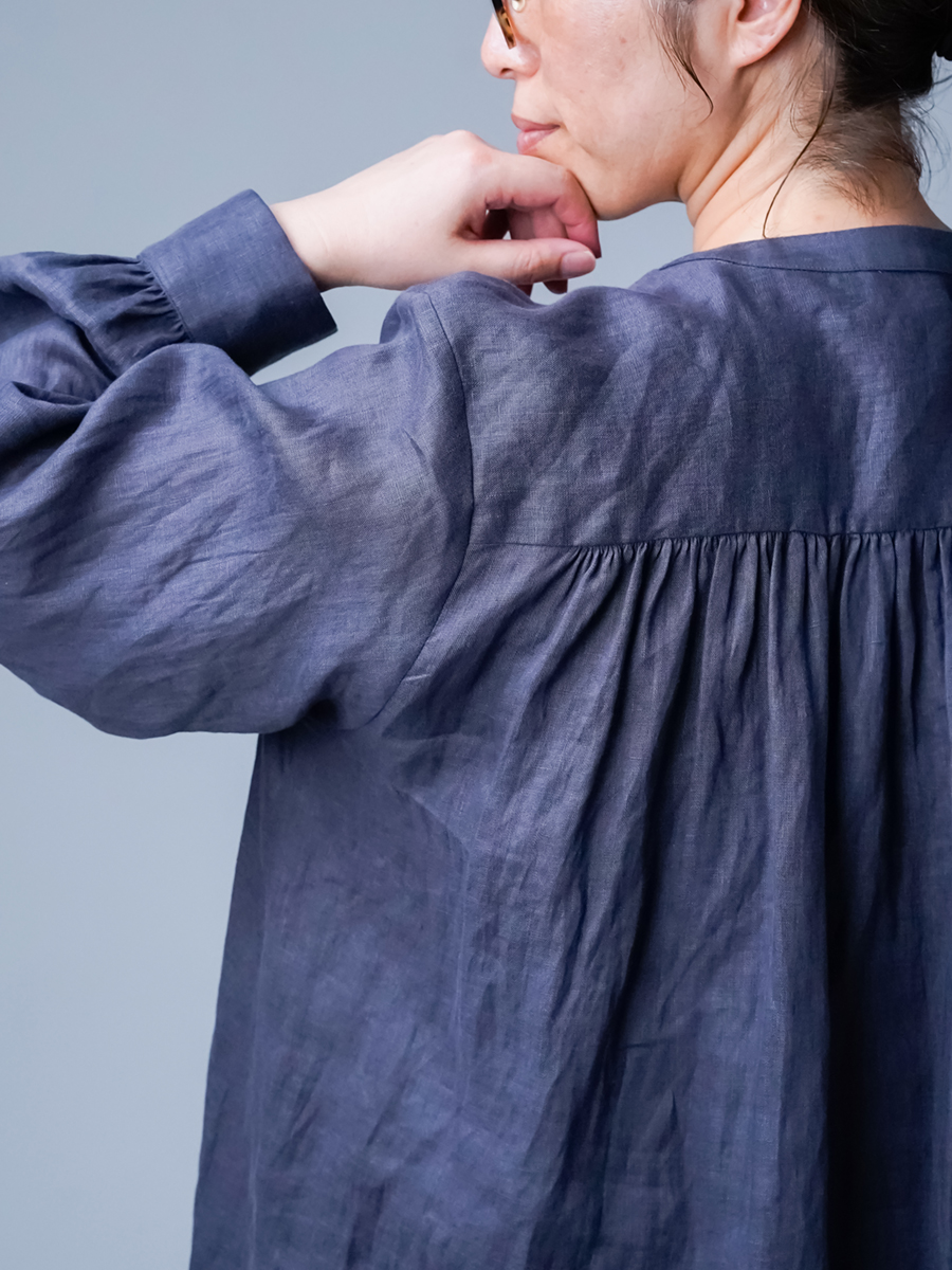 ありそうでなかったAラインの可愛らしいブラウス。雅亜麻でとても軽く、トップスとしても羽織としても活躍してくれそうな素敵なブラウスが完成しました。
