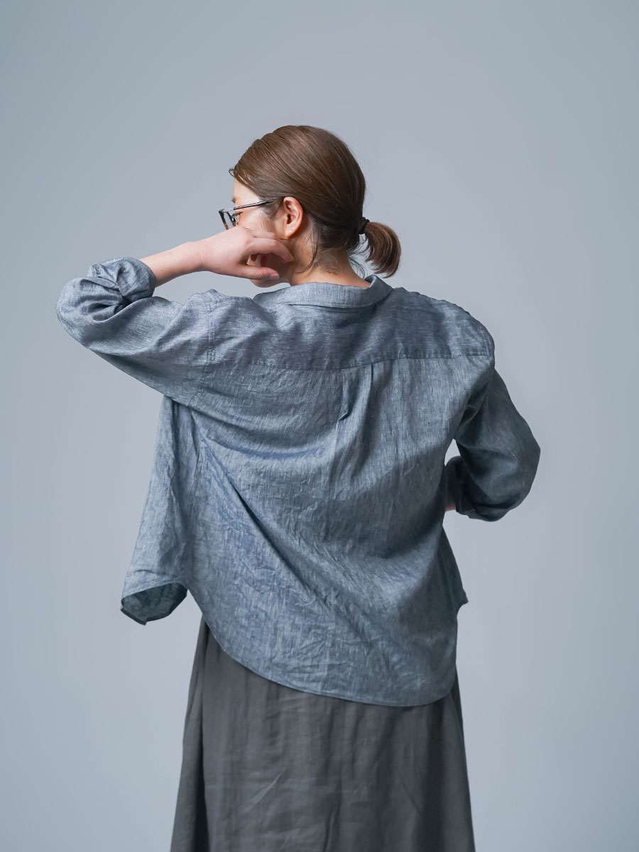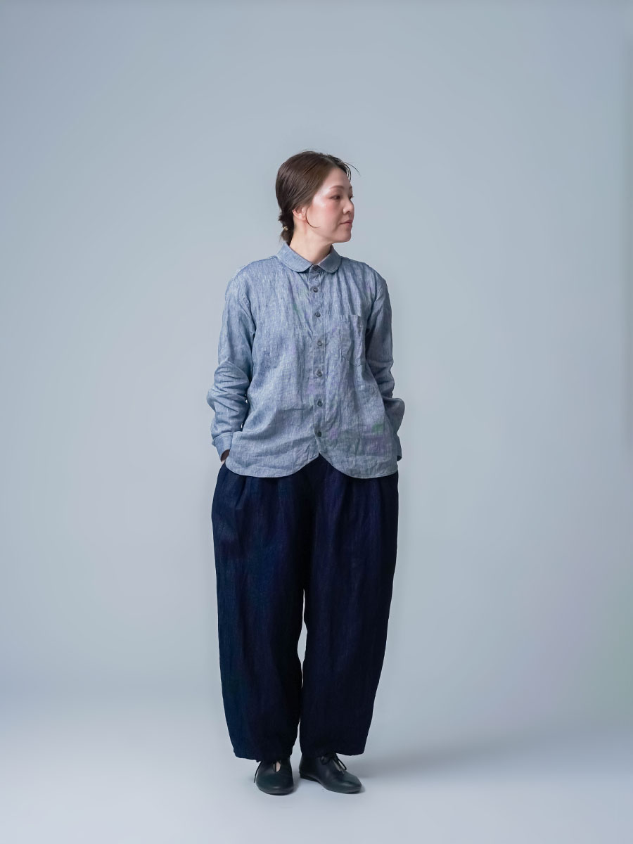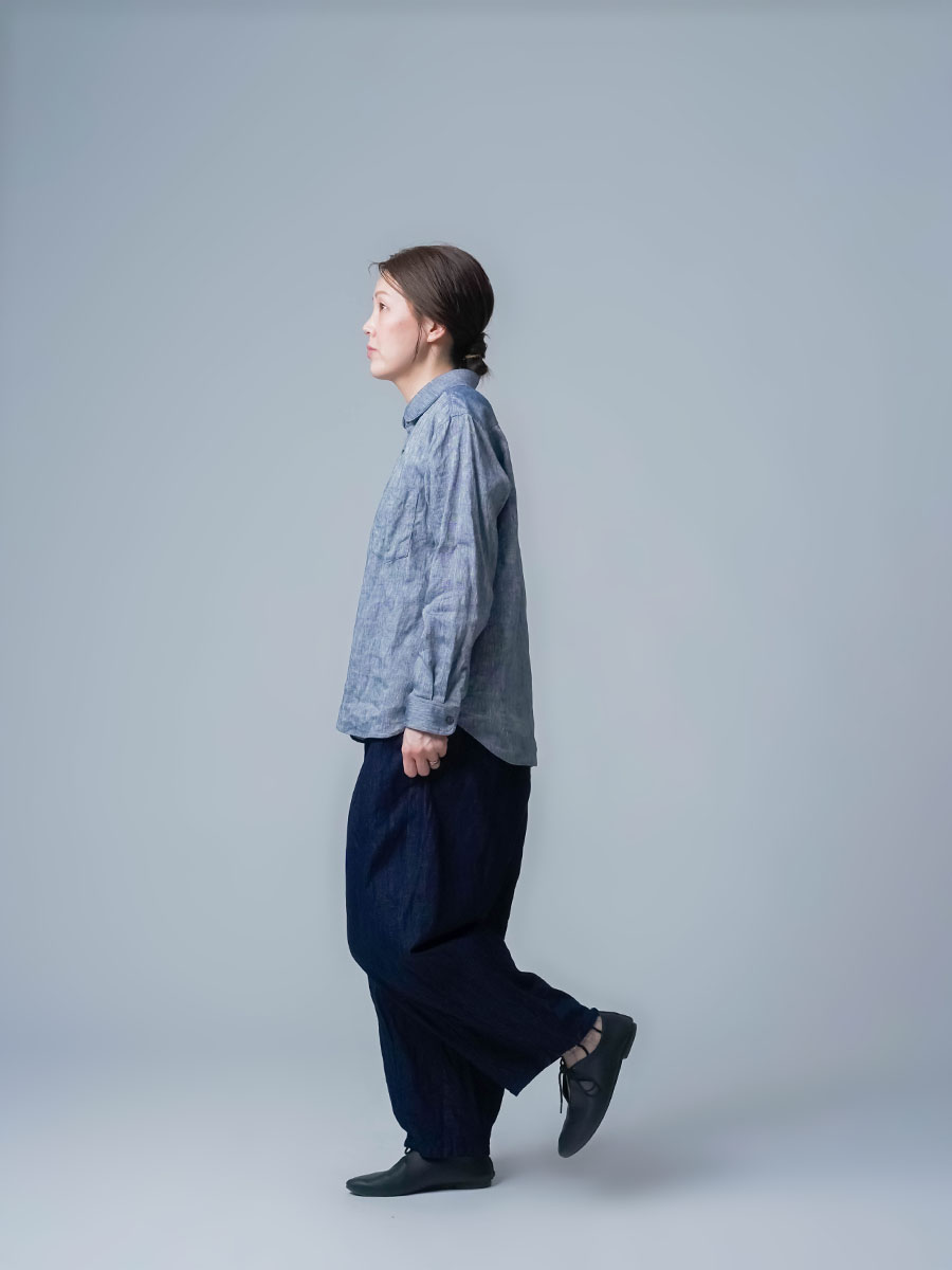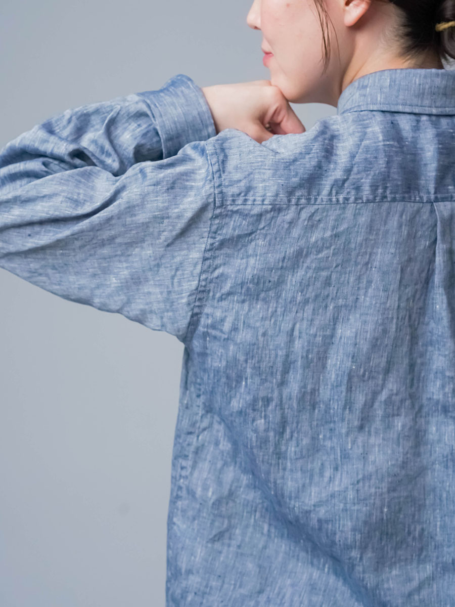 - ※生地工場の生産時期によって色味の濃淡が出ることがございます。セットアップでの着用の場合はご相談下さい。カラーリネンは最初色落ちや生地の性質上、毛羽落ちがある場合がございます。落ち着くまで数回は単品でのお洗濯を。最初は水通しをおすすめします。表面の毛羽立ちがとれて、肌への刺激が極端に少なくなります。リネン特有のネップ、節がございます。