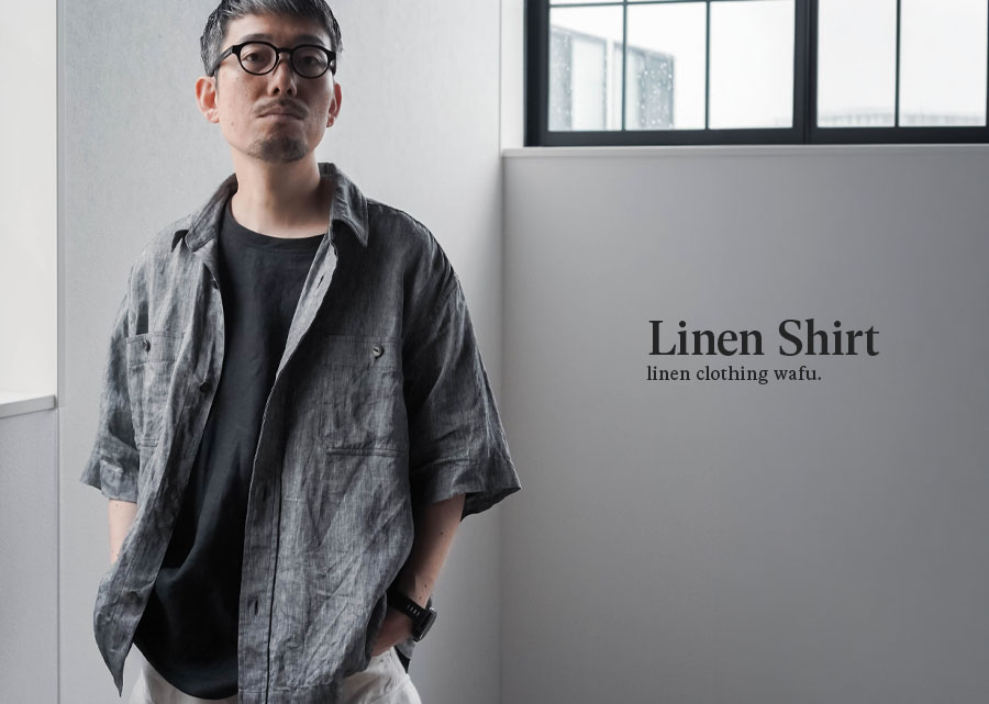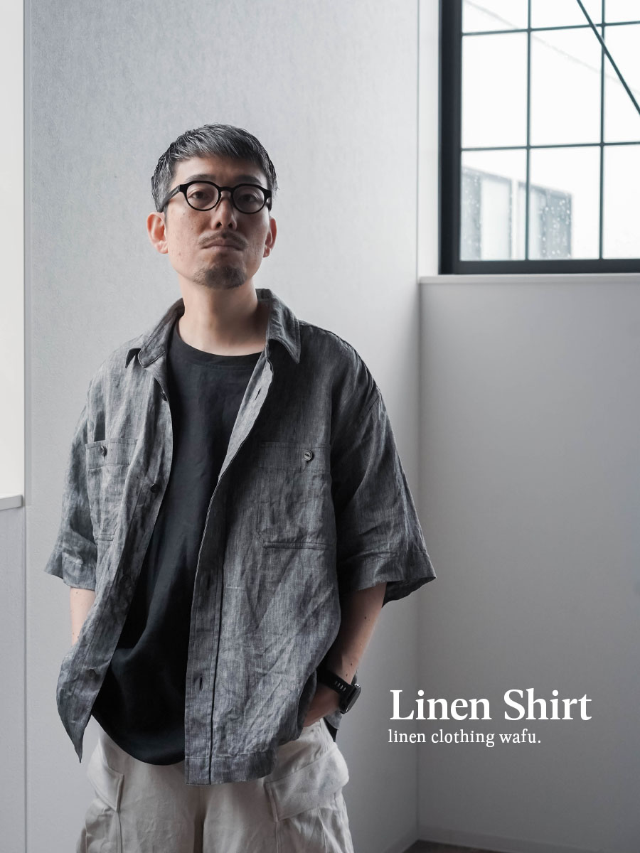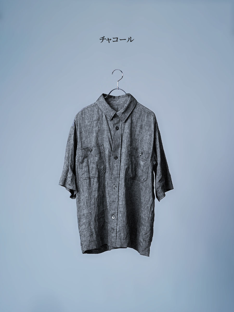 大人のリネン半袖シャツ。