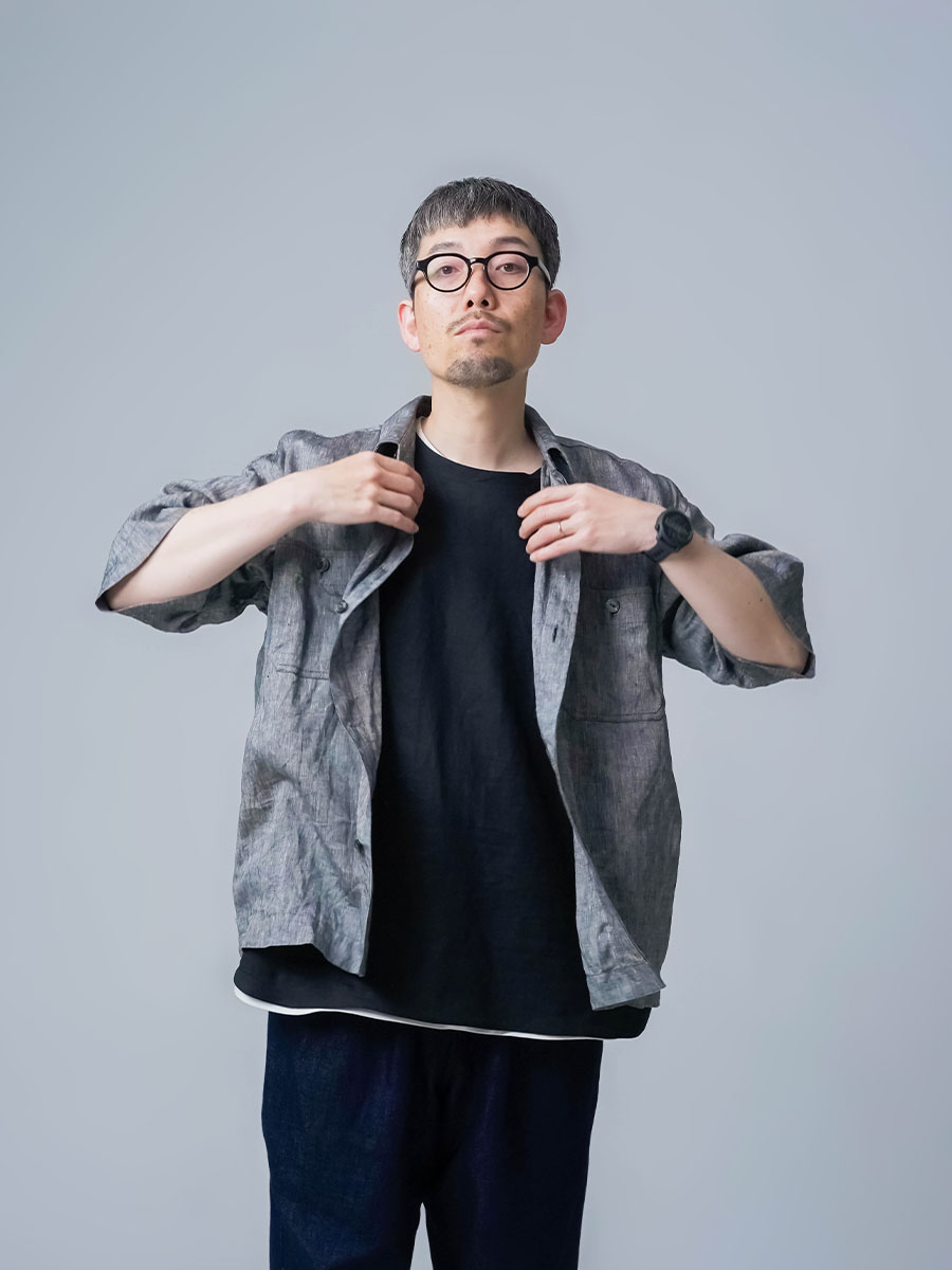本人より先に、シャツが場に馴染む。