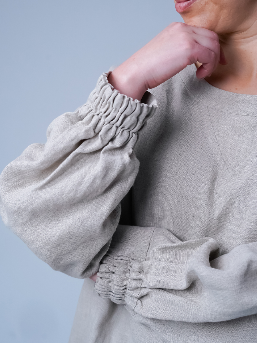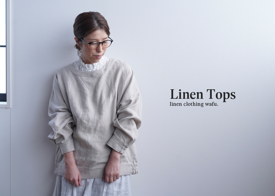 このリネンのスウェット風トップスは、