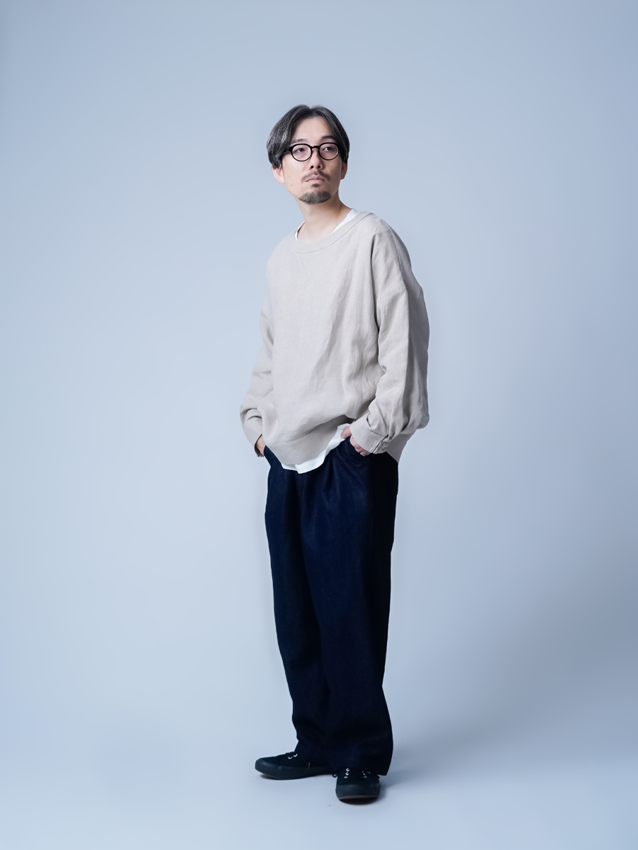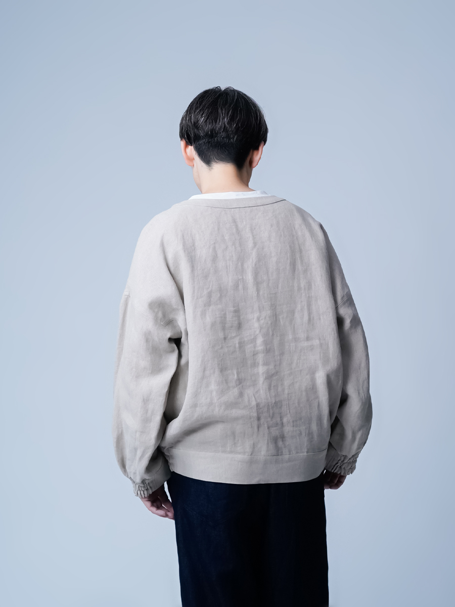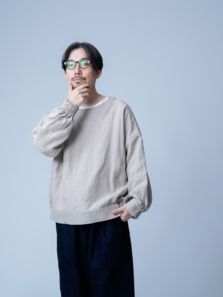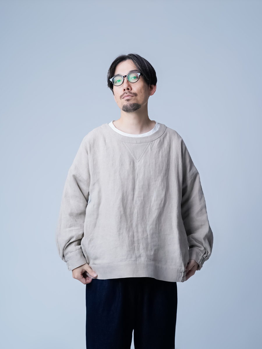 家着に見えない超オシャレなスウェットです。私はLサイズ一択です。程よいゆるさとお尻が隠れるバランスは育てていく度に味が出てヴィンテージの様な仕上がりになっていきます。私は着用して一年経ちますが当時のハリ感はなくクッタリ落ち感が出てきてます。育てるリネン、スウェット型だからこそ楽しめる作品です。着丈はお尻は1/4隠れます、袖丈は手首でワンクッション。袖口がゴムなのでずるずる下がる事はありません。