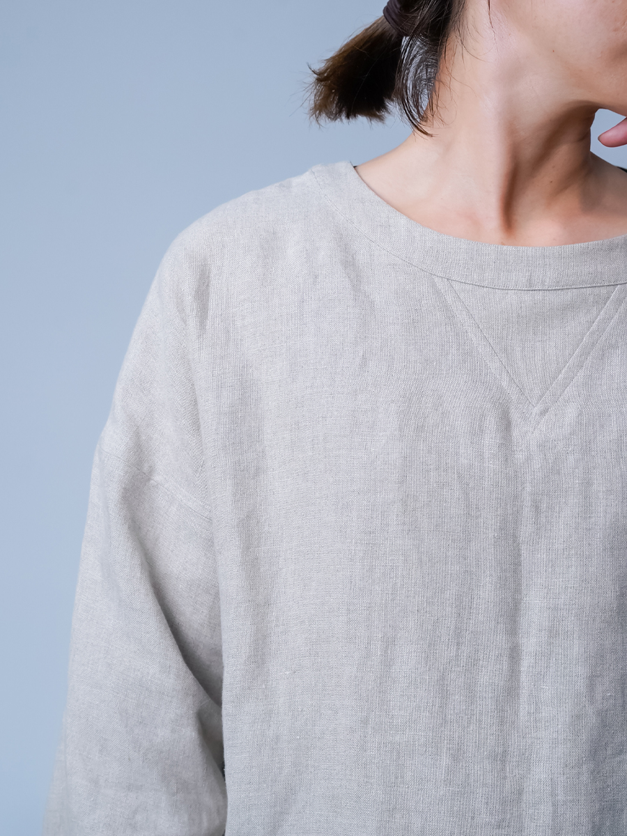 生地は中厚地の亜麻ナチュラル。