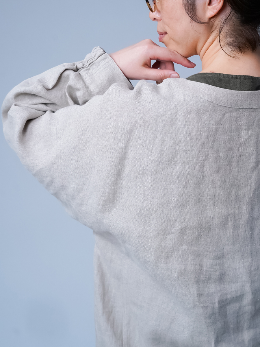 - ※生地工場の生産時期によって色味の濃淡が出ることがございます。セットアップでの着用の場合はご相談下さい。カラーリネンは最初色落ちや生地の性質上、毛羽落ちがある場合がございます。落ち着くまで数回は単品でのお洗濯を。最初は水通しをおすすめします。表面の毛羽立ちがとれて、肌への刺激が極端に少なくなります。リネン特有のネップ、節がございます。