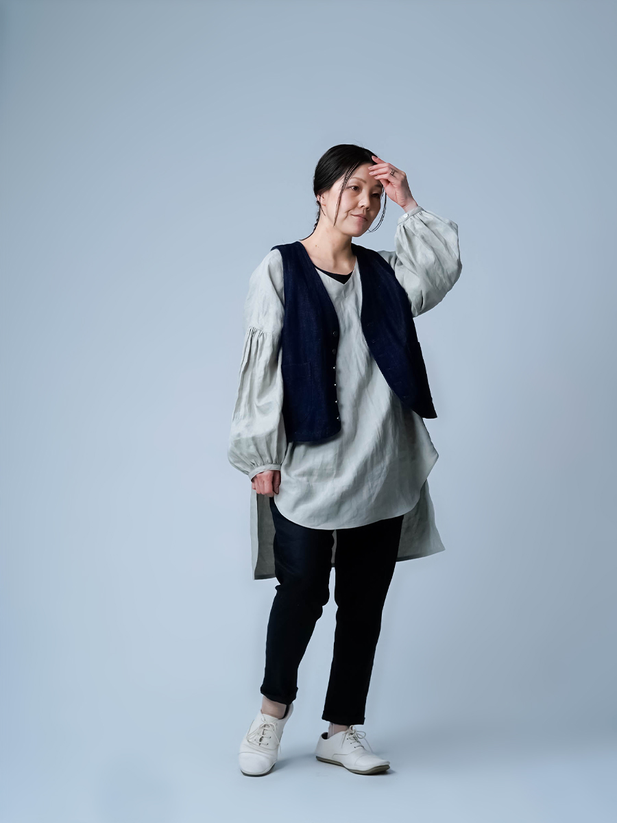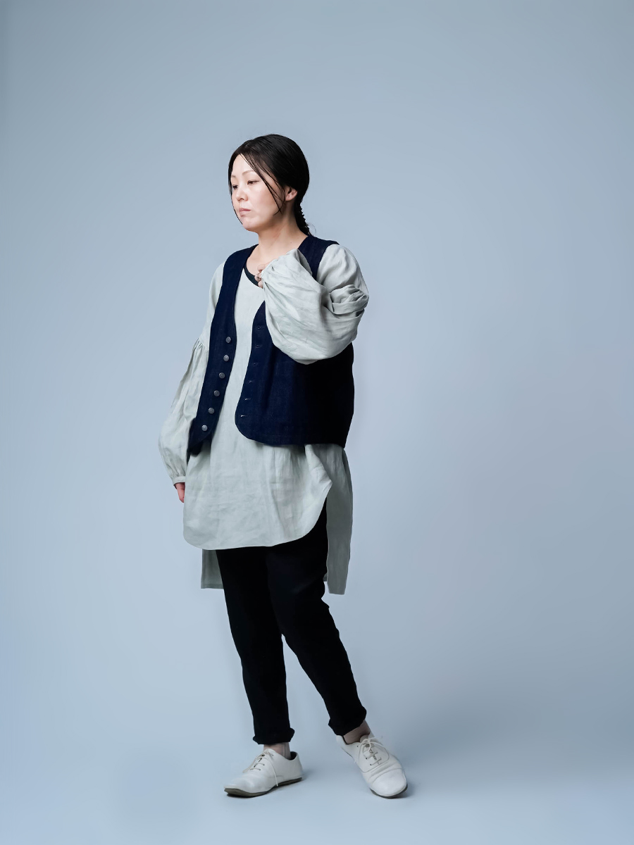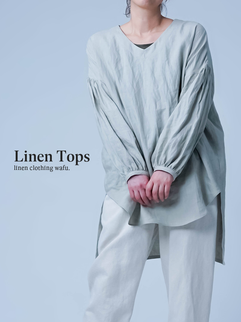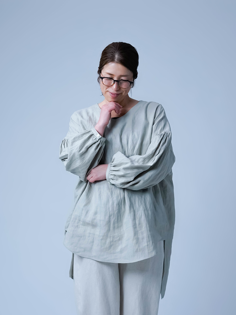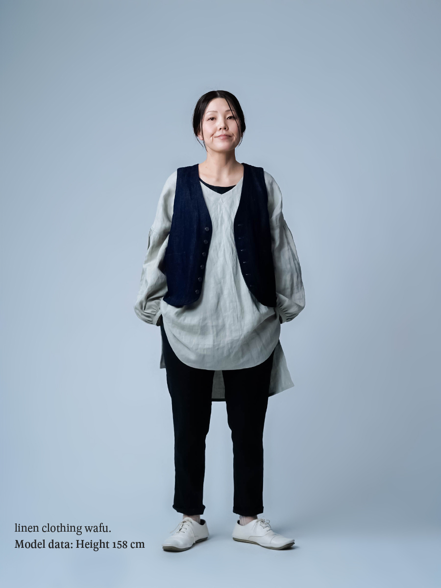 - ※生地工場の生産時期によって色味の濃淡が出ることがございます。セットアップでの着用の場合はご相談下さい。カラーリネンは最初色落ちや生地の性質上、毛羽落ちがある場合がございます。落ち着くまで数回は単品でのお洗濯を。最初は水通しをおすすめします。表面の毛羽立ちがとれて、肌への刺激が極端に少なくなります。リネン特有のネップ、節がございます。