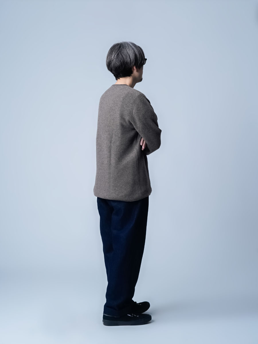 ゆったりめが好きな私は、Lを選びます。着丈はお尻が半分隠れるくらい。袖丈は手の甲が隠れるくらいです。身幅はゆったりとしていて自分の好みにぴったりです。シンプルで流行りすたりがなく、長く着られるものだからこそ上質なものを。一目でわかる上質さ。もちろん着ていても気持ちがいいです。大人になった自分を喜ばせてくれる作品は間違いなくこの作品です。