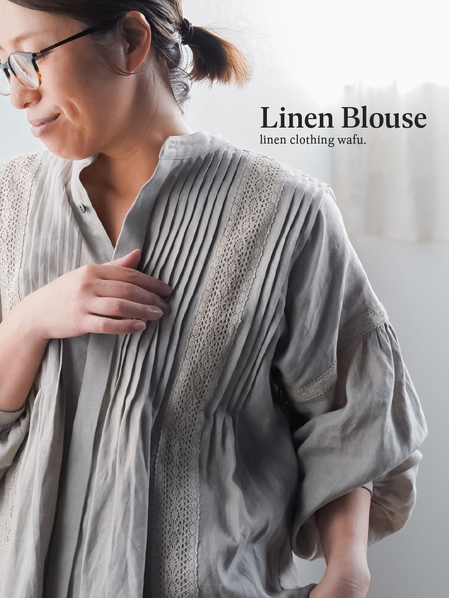 wafu.の超絶技法が詰まった渾身のブラウス。ピンタックとヴィンテージ風レースの組み合わせ、この繊細さに完全に心をつかまれました。甘さがありながらも上品で、見た瞬間にこれは絶対に逃せない!とスイッチが入りました。サイズ感は程よいゆとりがあり、お尻がしっかり隠れる丈。腕まわりもたっぷりしているので動きやすく、体型カバーしながらおしゃれを楽しめる理想の一枚です。甘め要素がやや強く見えますが、タブリエやワークアイテムを合わせれば一気によしコーデの完成です。きっと幻の一着になると思います。私はもう、迷わずゲット宣言です。