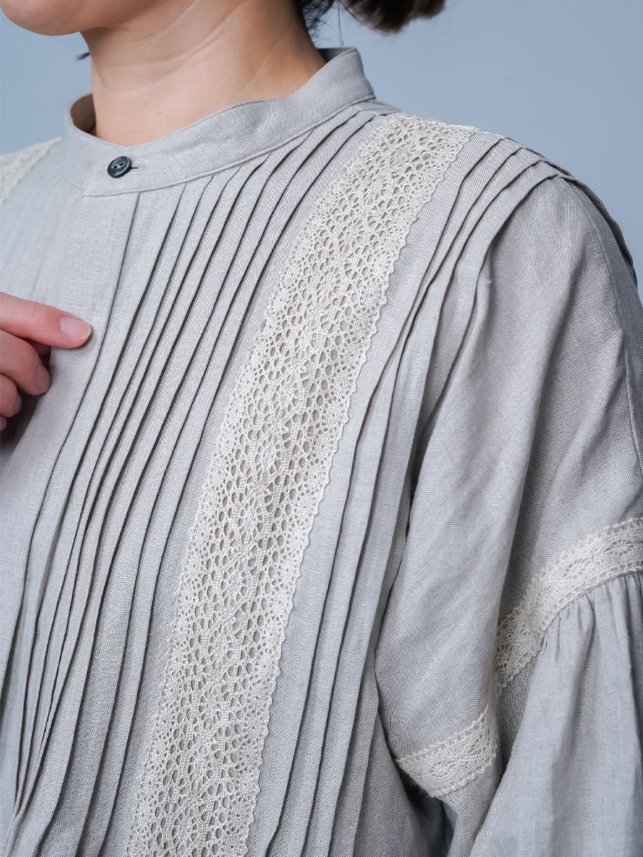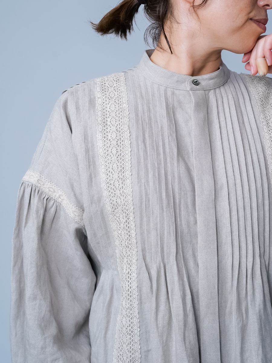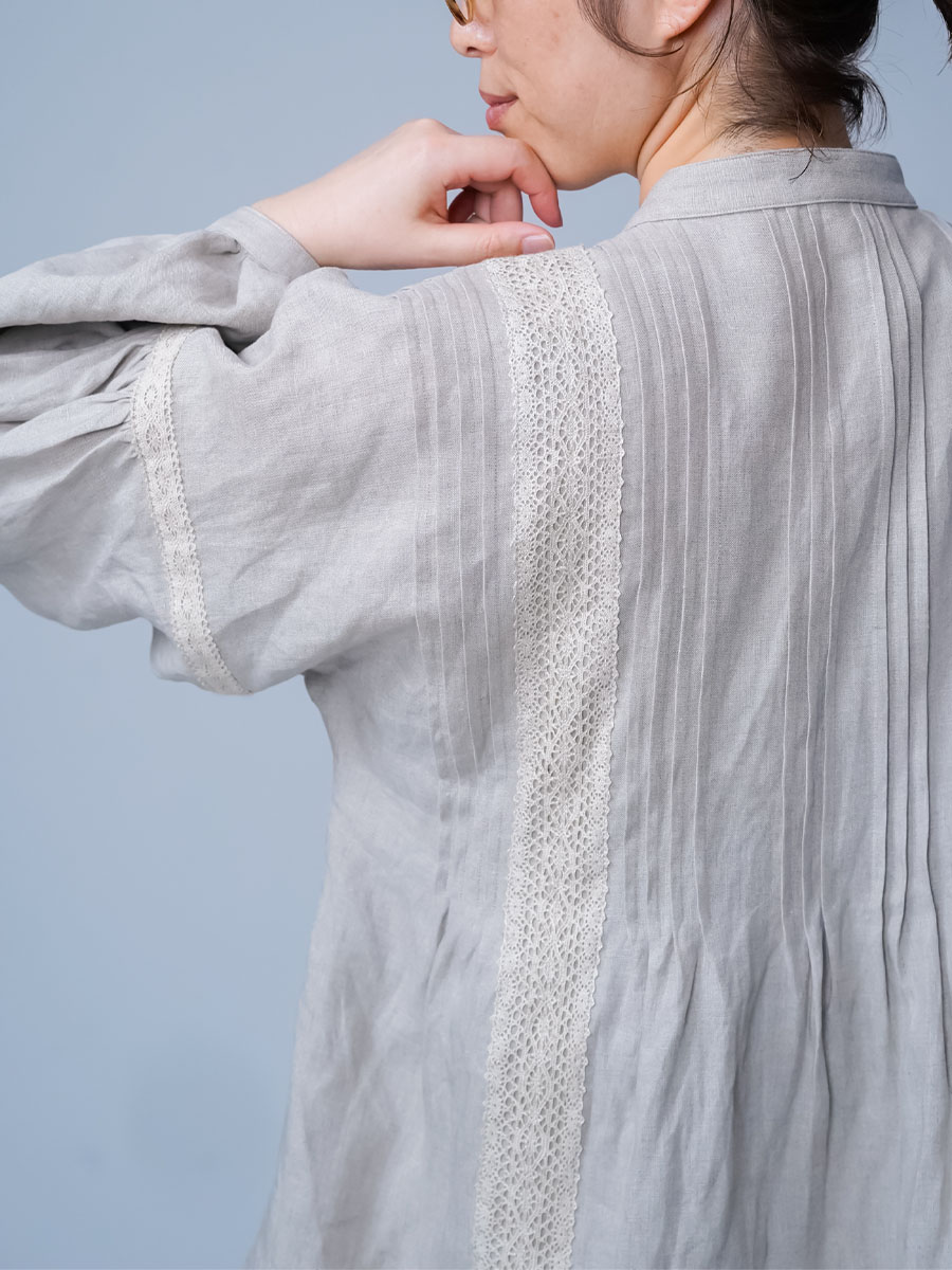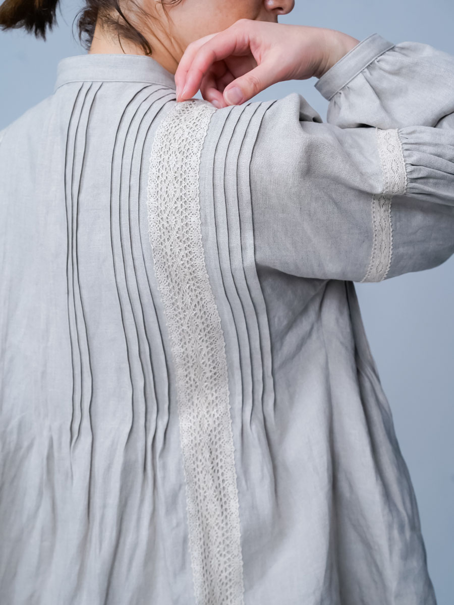 前身頃と後ろ身頃に走る、幾重ものピンタック。
