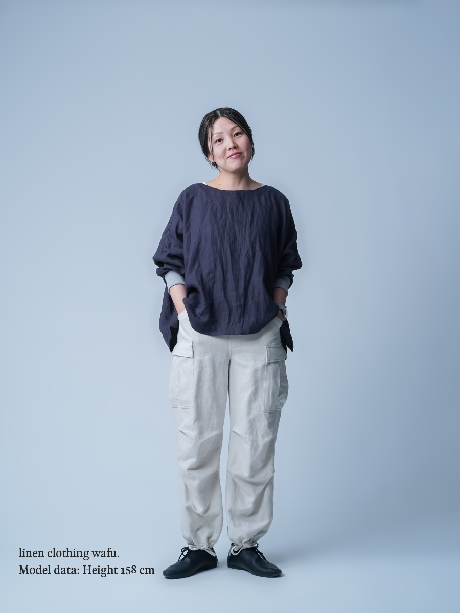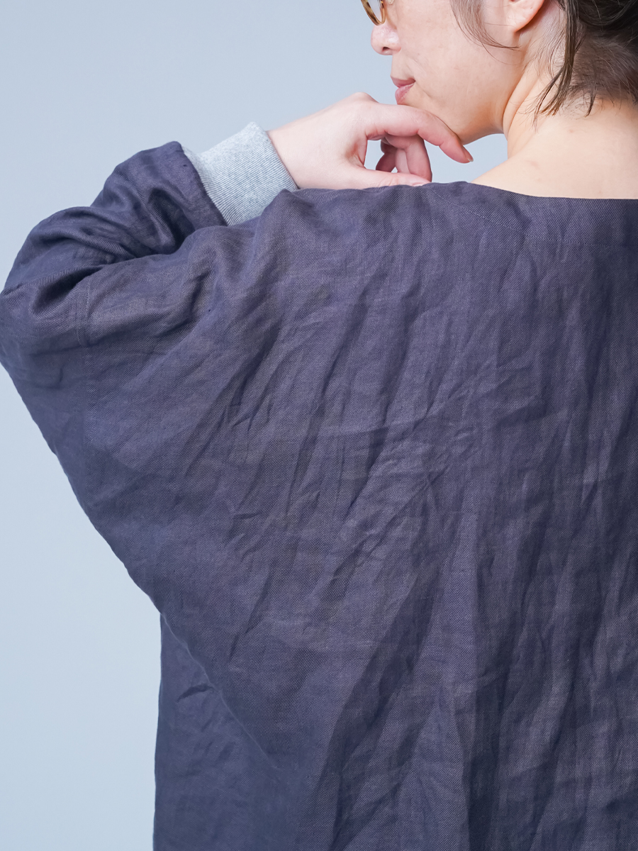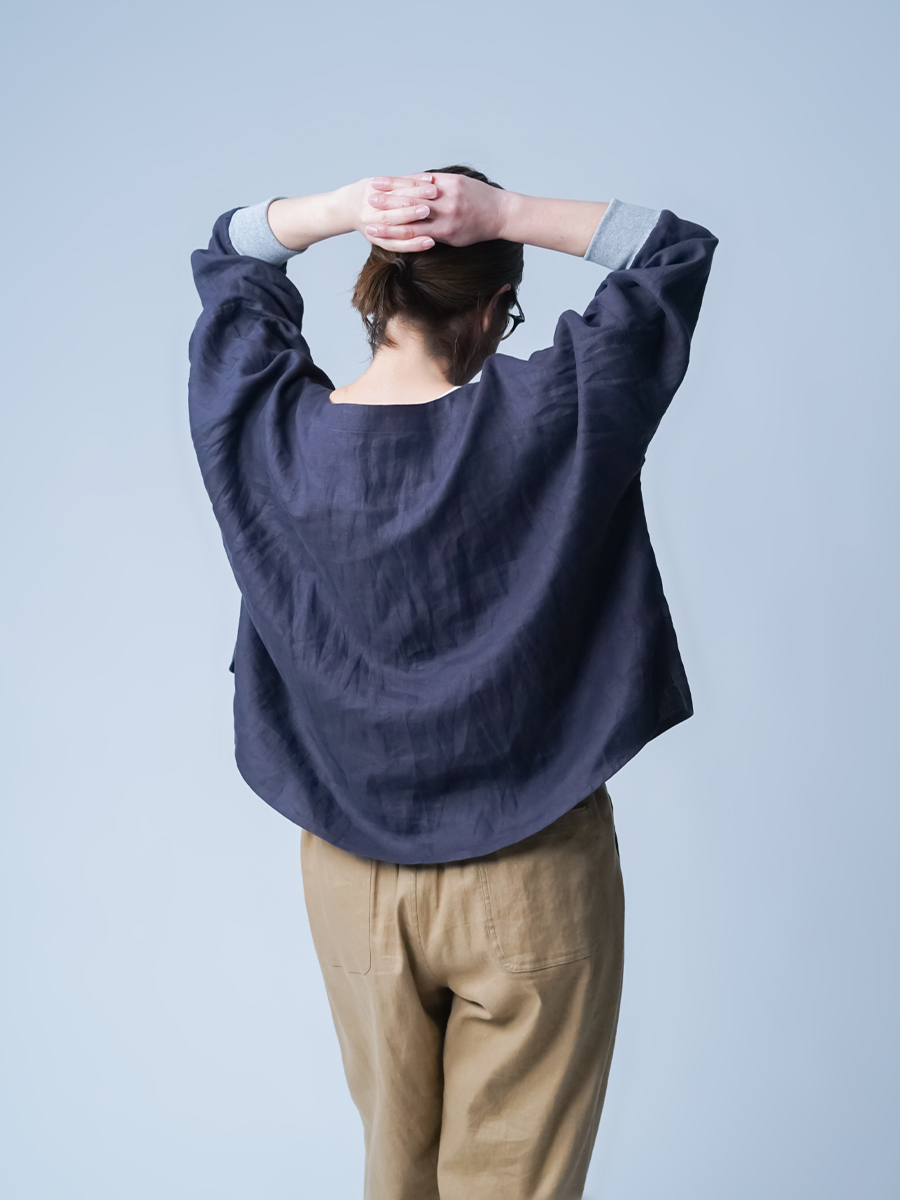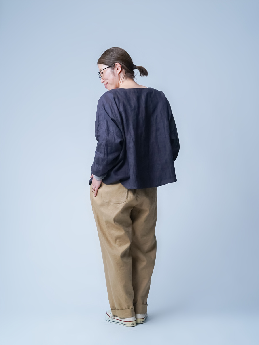 - ※生地工場の生産時期によって色味の濃淡が出ることがございます。セットアップでの着用の場合はご相談下さい。カラーリネンは最初色落ちや生地の性質上、毛羽落ちがある場合がございます。落ち着くまで数回は単品でのお洗濯を。最初は水通しをおすすめします。表面の毛羽立ちがとれて、肌への刺激が極端に少なくなります。リネン特有のネップ、節がございます。