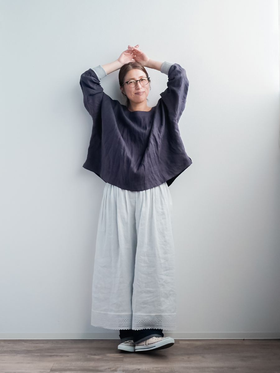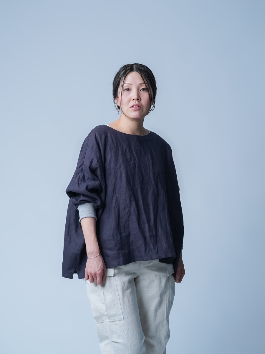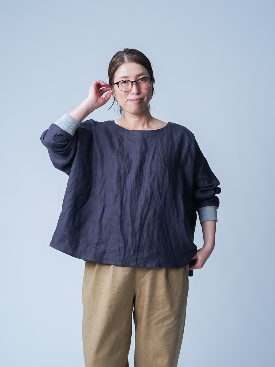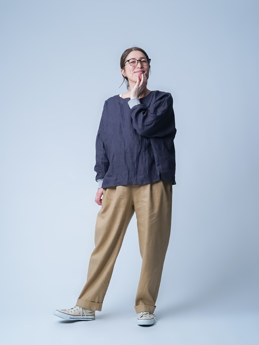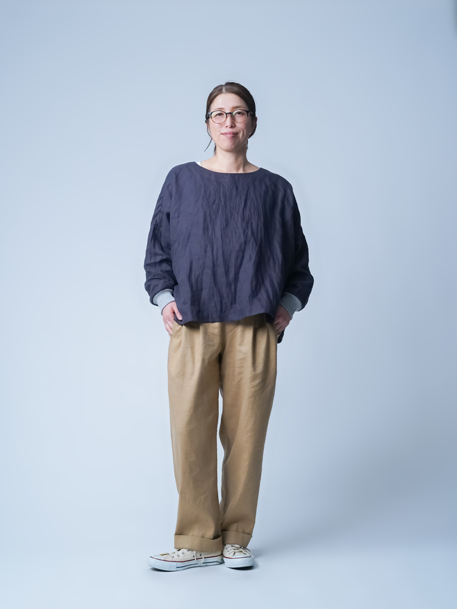- ※生地工場の生産時期によって色味の濃淡が出ることがございます。セットアップでの着用の場合はご相談下さい。カラーリネンは最初色落ちや生地の性質上、毛羽落ちがある場合がございます。落ち着くまで数回は単品でのお洗濯を。最初は水通しをおすすめします。表面の毛羽立ちがとれて、肌への刺激が極端に少なくなります。リネン特有のネップ、節がございます。