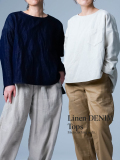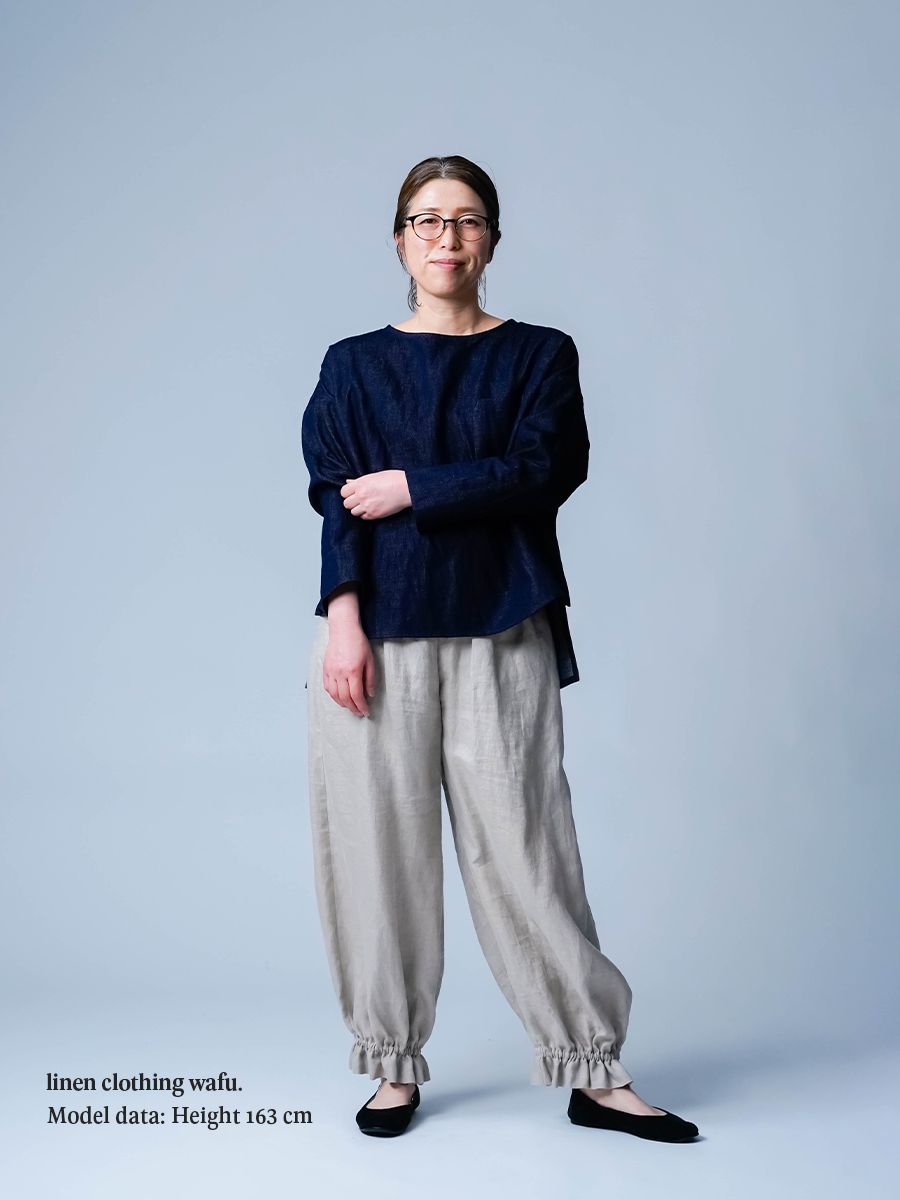 - ※生地工場の生産時期によって色味の濃淡が出ることがございます。セットアップでの着用の場合はご相談下さい。カラーリネンは最初色落ちや生地の性質上、毛羽落ちがある場合がございます。落ち着くまで数回は単品でのお洗濯を。最初は水通しをおすすめします。表面の毛羽立ちがとれて、肌への刺激が極端に少なくなります。リネン特有のネップ、節がございます。