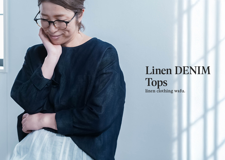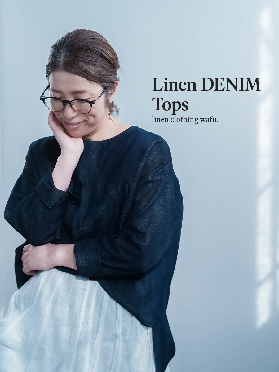 また、リネンデニムはお洗濯の環境によって2cm~4cmほどの縮みがございます。