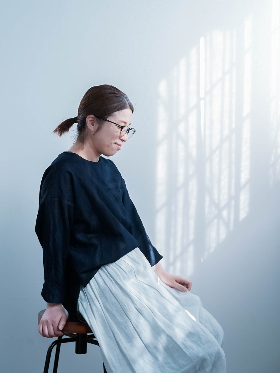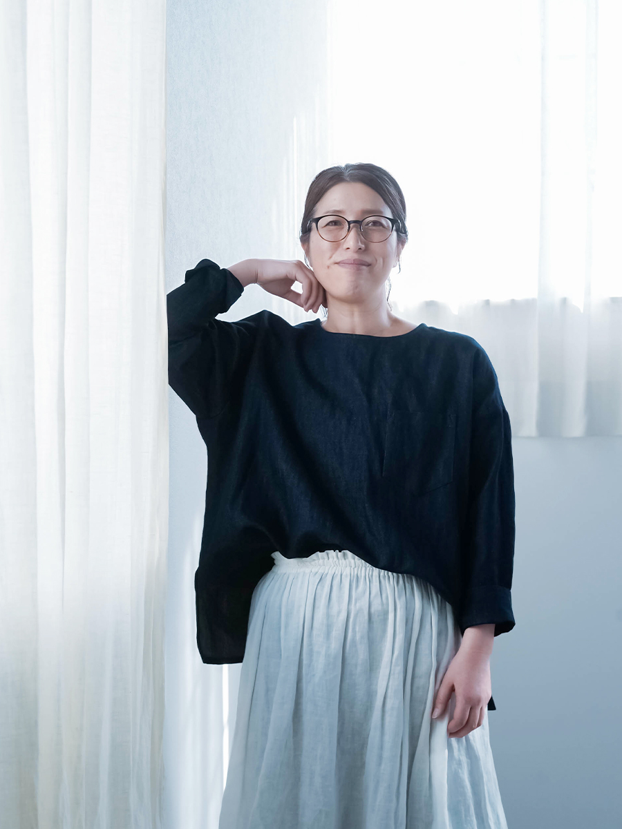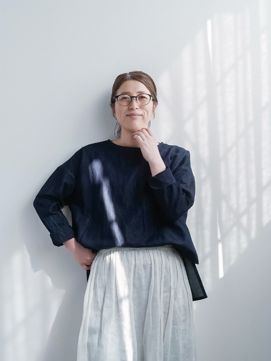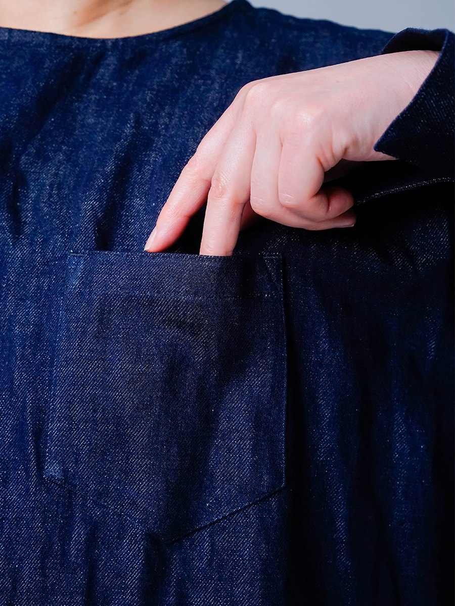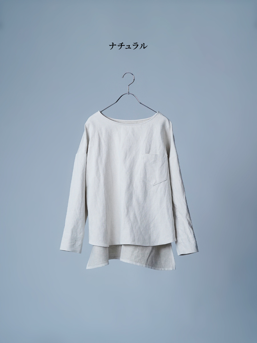 とても着やすく、日常に取り入れやすい一枚。肩の切り替えがやや下になっているのでで、肩まわりをすっきりと見せてくれます。首元は鎖骨が見えるほどよい開き具合で、軽やかな印象。袖は手首ほどの長さで、折り返して着るのもおすすめです。身幅はインナーを一枚重ねても窮屈さがなく、後ろ丈はおしりがほぼ隠れる安心の丈感です。