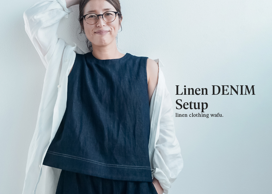 リネンデニムのセットアップは、あなたの暮らしに軽やかさ、そして賢さを添えてくれるでしょう。
