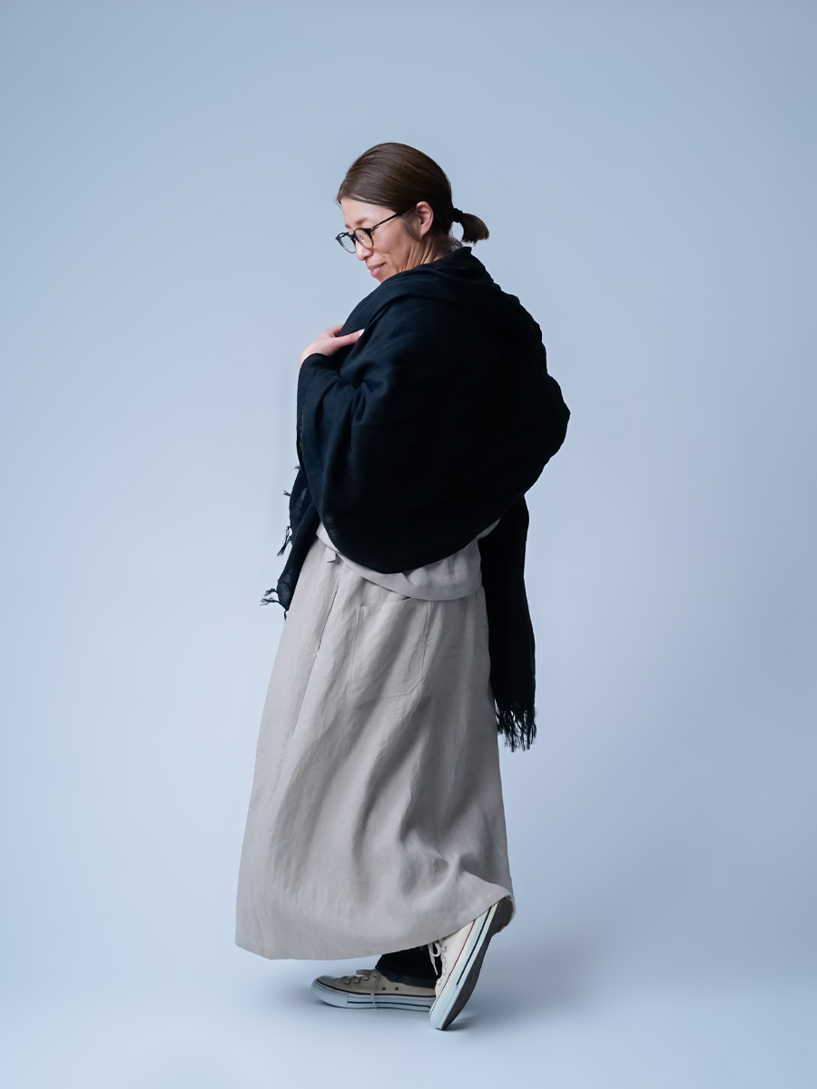 wafu.のリネンストールは、気合いを入れて巻くタイプではありません。