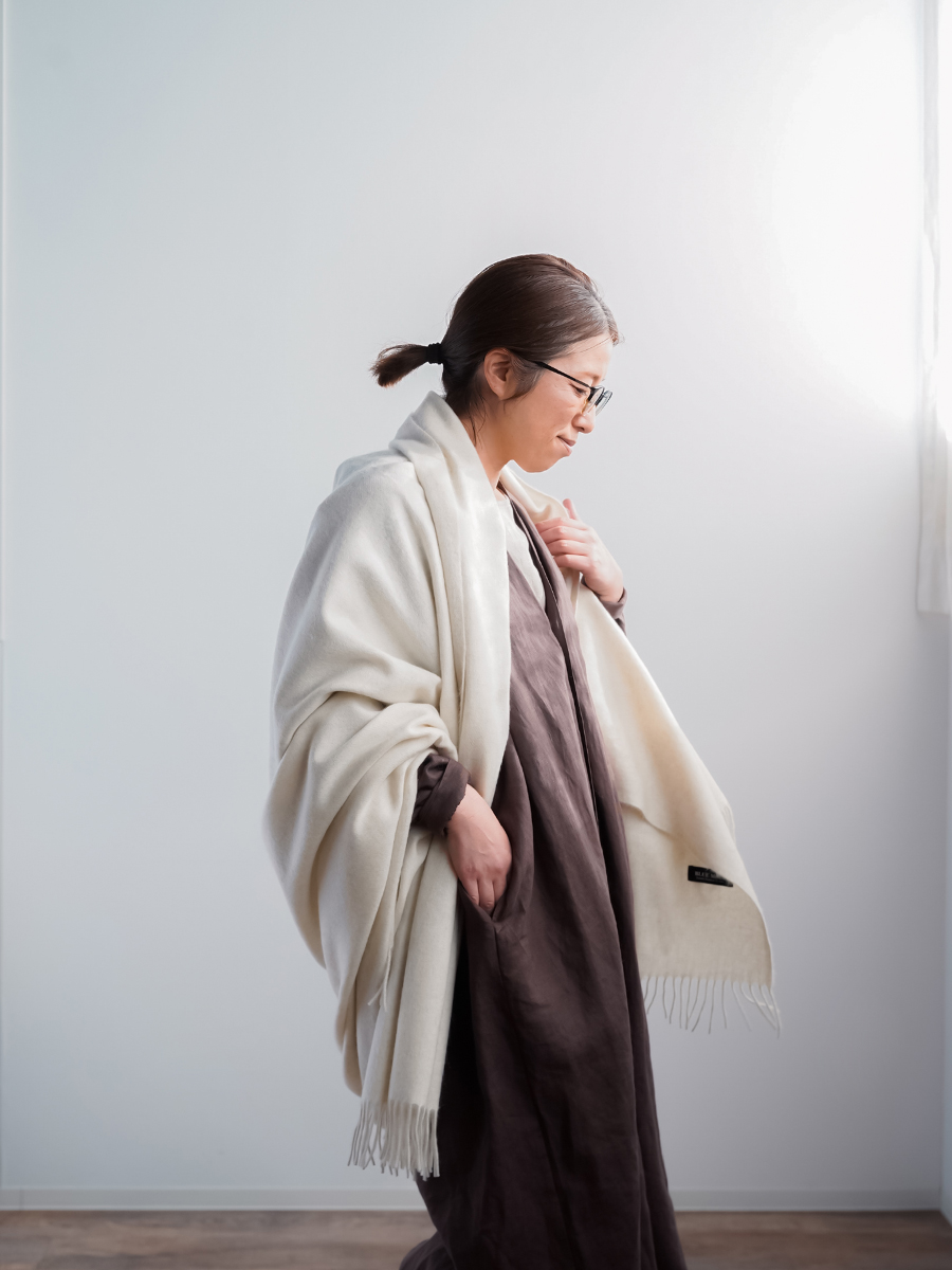 そこで用意したのが、このヤク70%×カシミヤ30%の大判ショールです。
