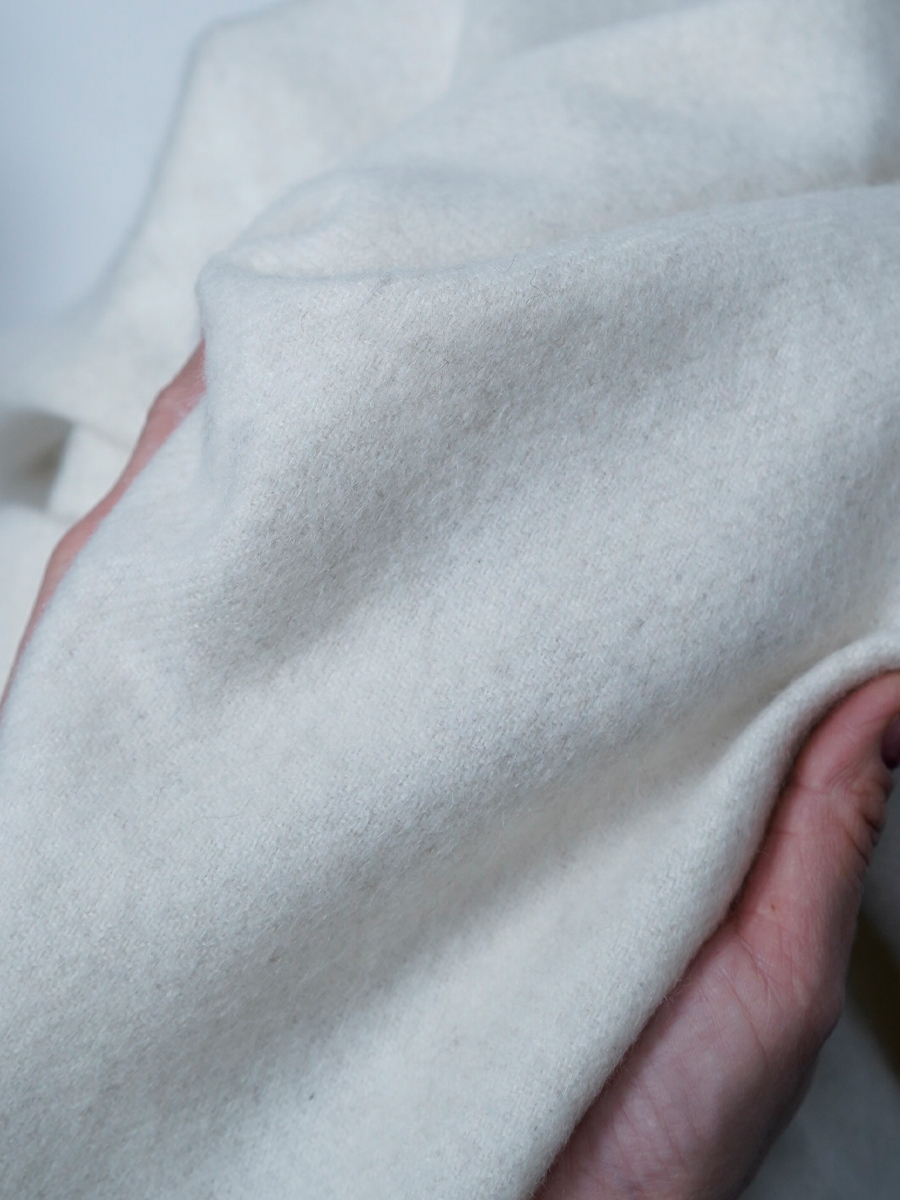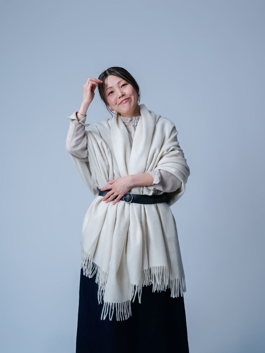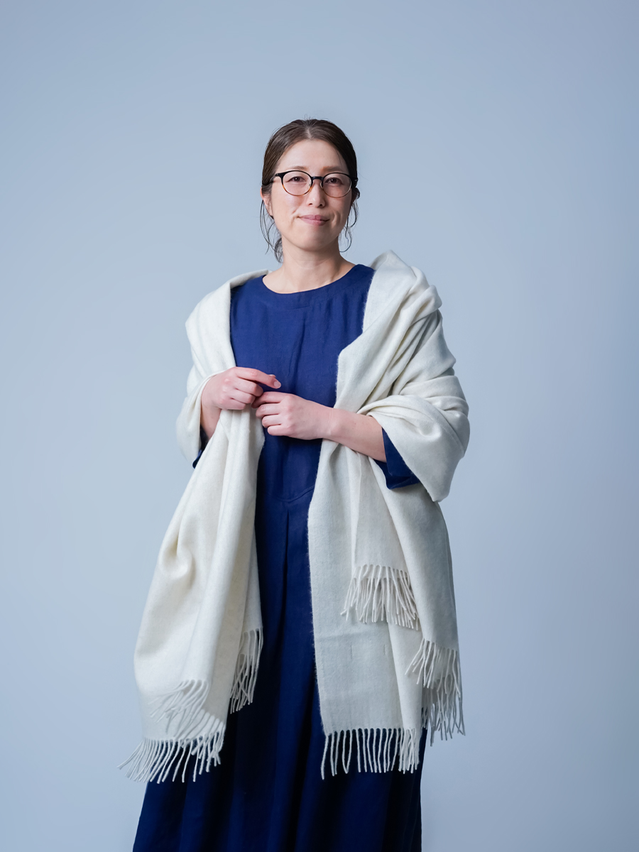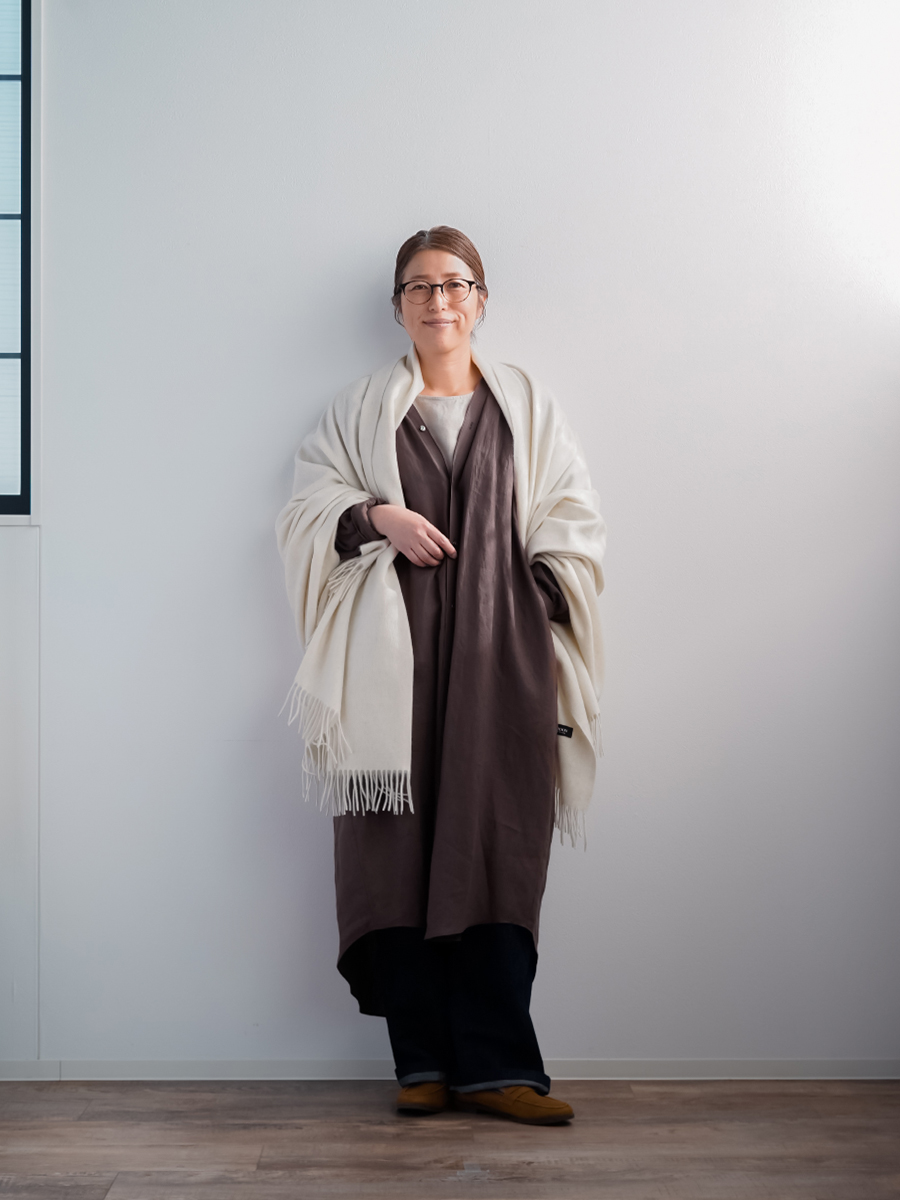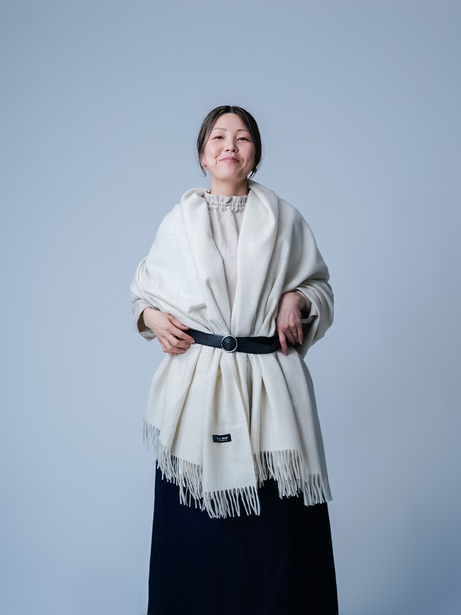 そこにカシミヤ30%を足して、首・肩にのせたときの軽さと、肌ざわりの良さを持たせています。