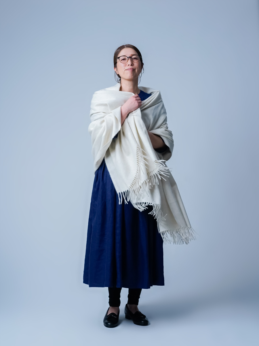 ヤク70%×カシミヤ30%、モンゴルで選んだ原毛の大判ショール。
