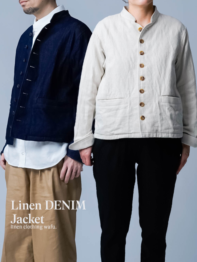 【リネンデニムジャケット】端正と抜け感の共存。リネンデニム ナポレオンジャケット / 2色展開